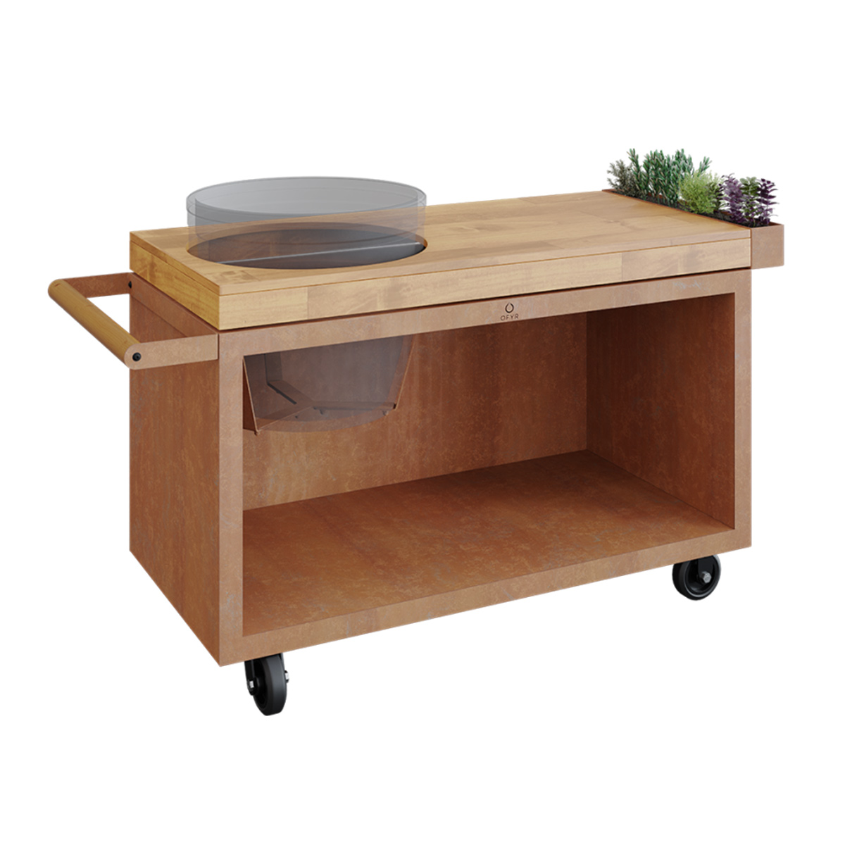 Upgrade your outdoor cooking space with the Kamado Table Corten 135 PRO Teak Wood KJ