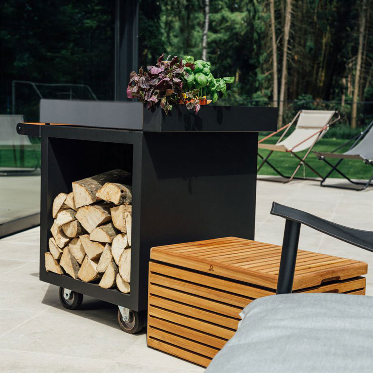 Upgrade your outdoor cooking area with the Kamado Table Black 65 PRO Teak Wood KJ.