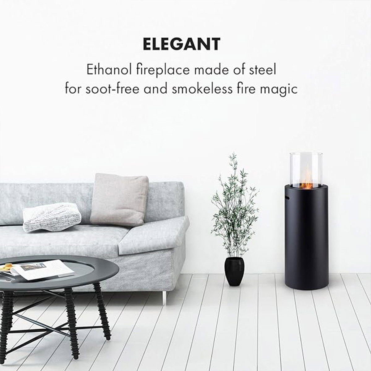 A sleek and contemporary ethanol fireplace designed to provide efficient heating and stylish ambiance in indoor spaces.