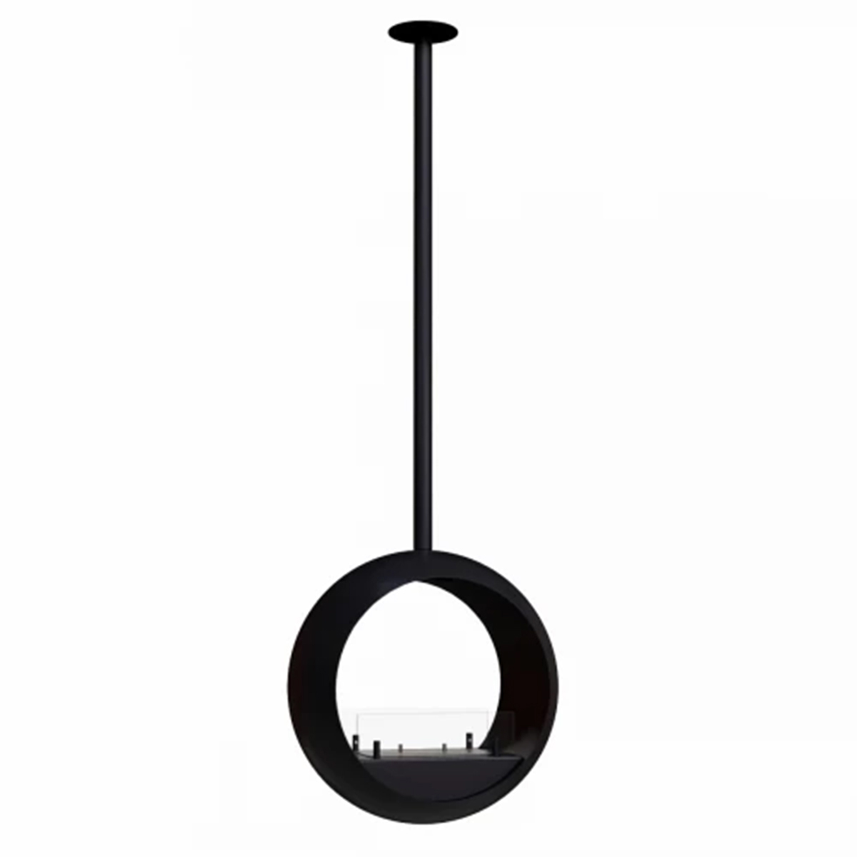 A sophisticated and modern ethanol fireplace solution, designed to enhance indoor spaces with its sleek black finish and dual-sided flames.