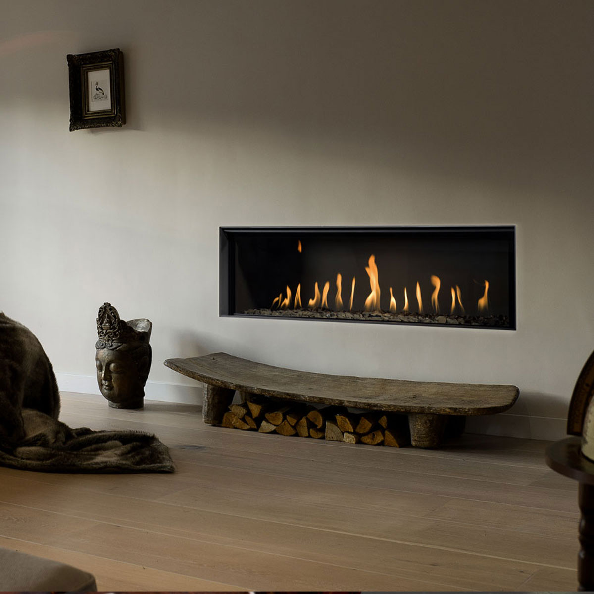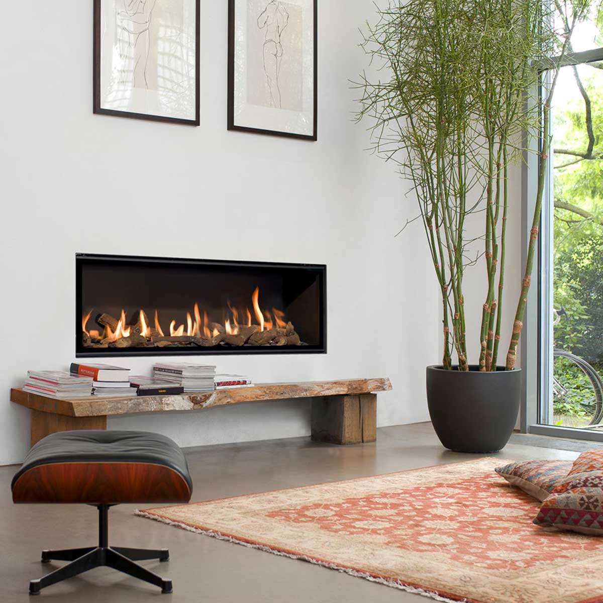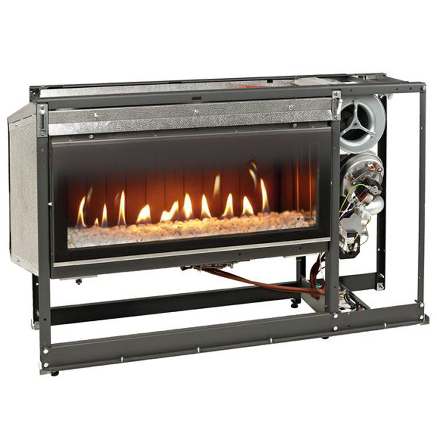 Gas fireplace central horizontal tunnel.