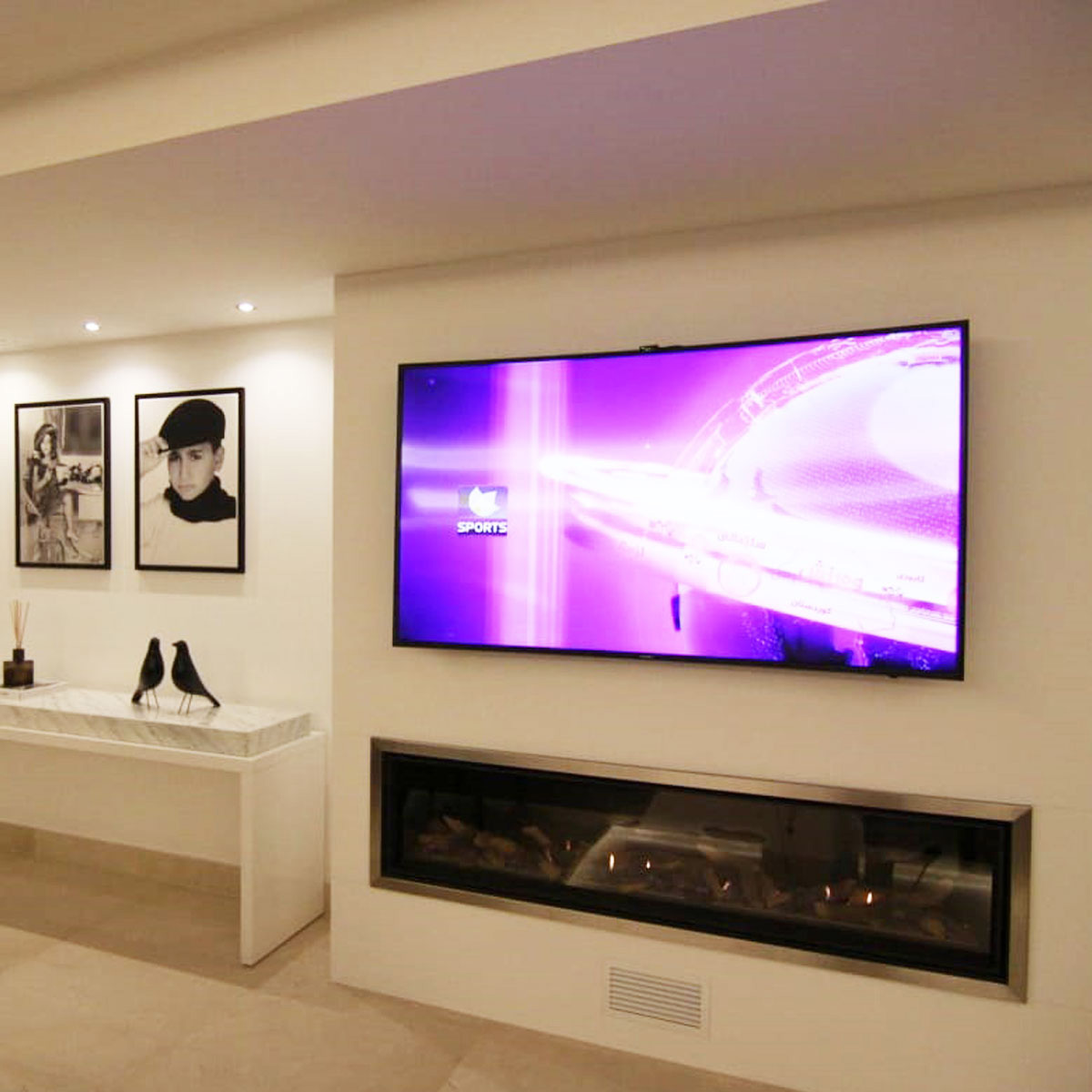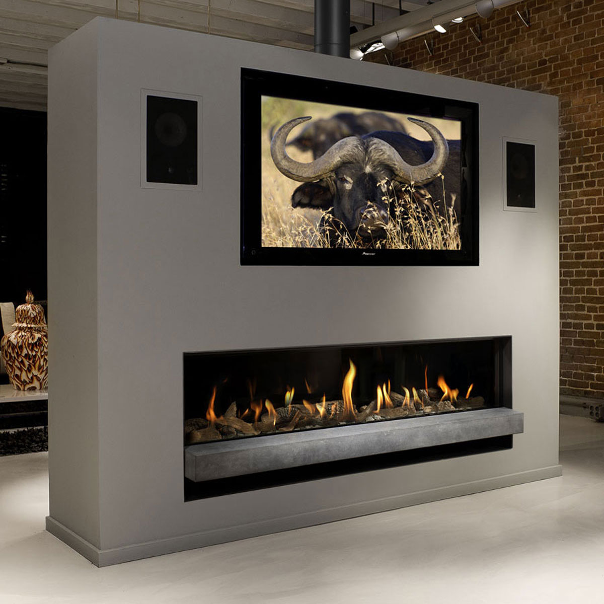 Gas fireplace central horizontal tunnel.