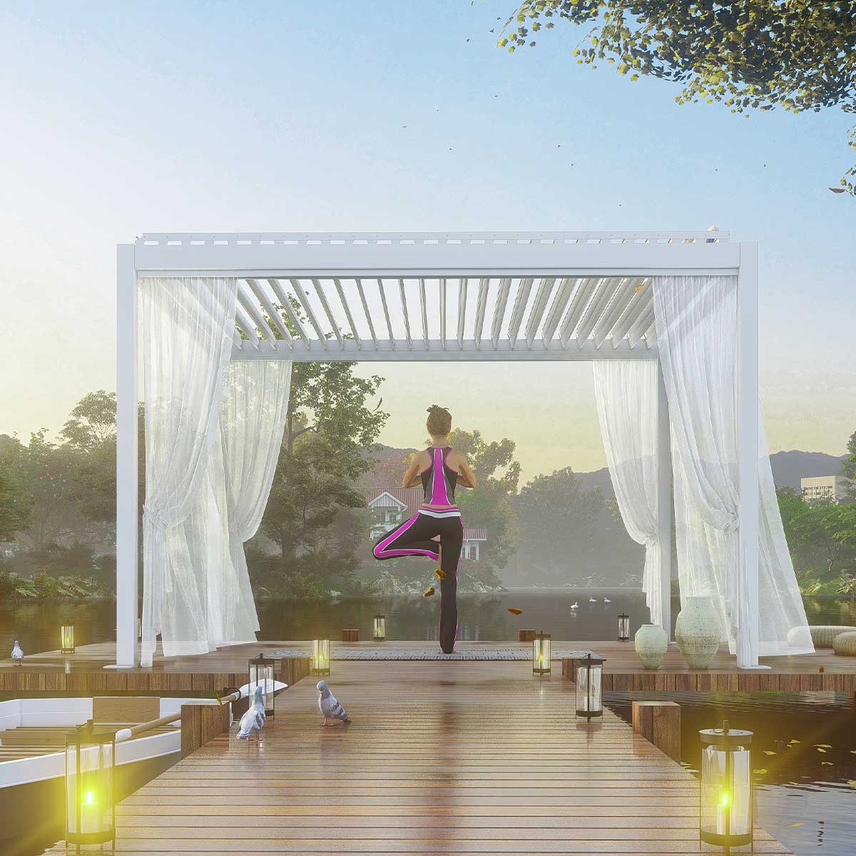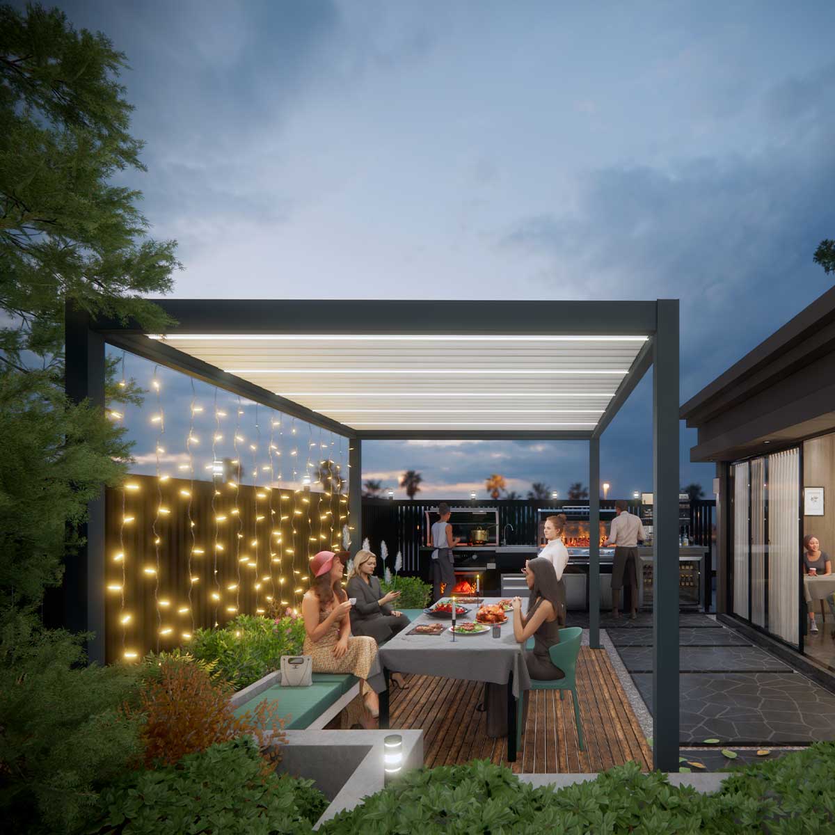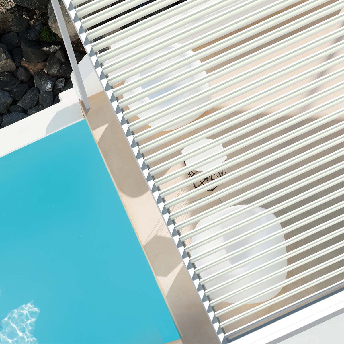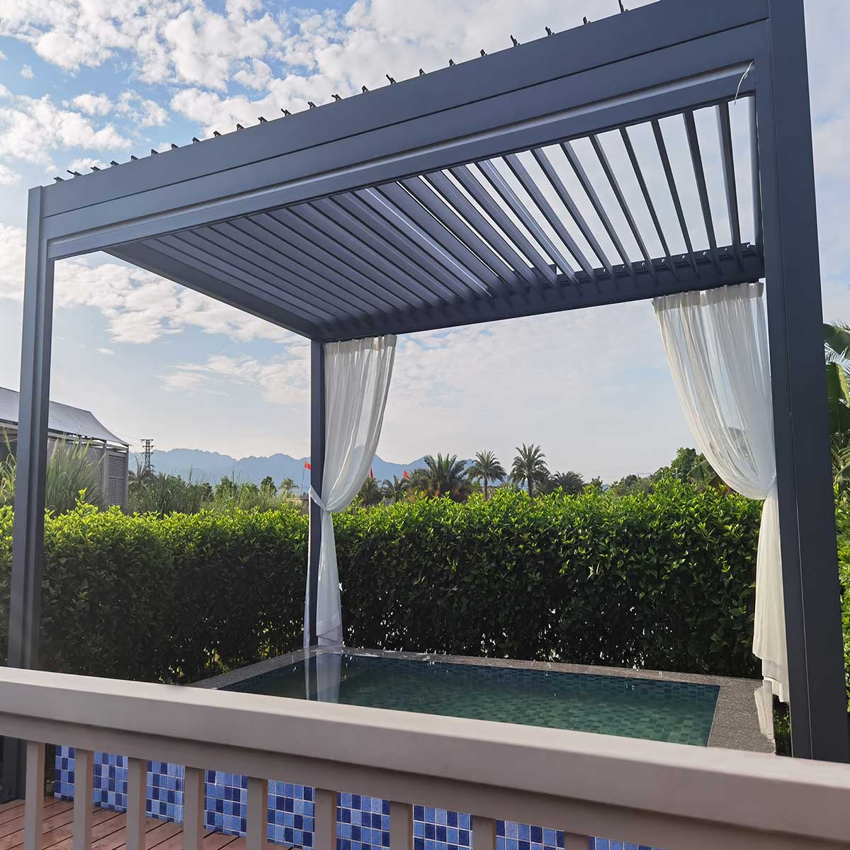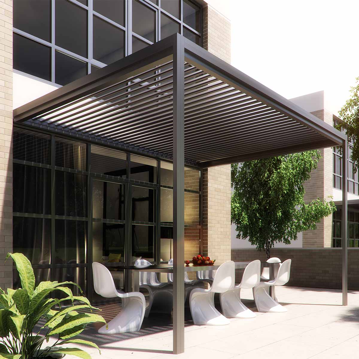 Dimensions: 315 x 315 cm Material: Aluminum -Fixed or adjustable shading wings fitted with sealing gaskets upon closing, offering protection