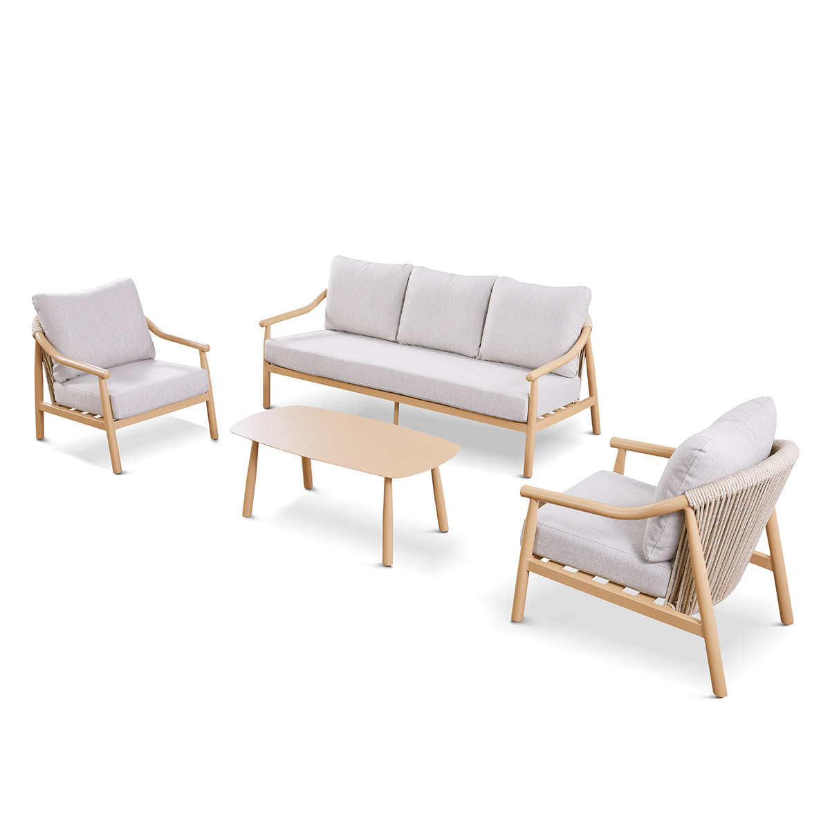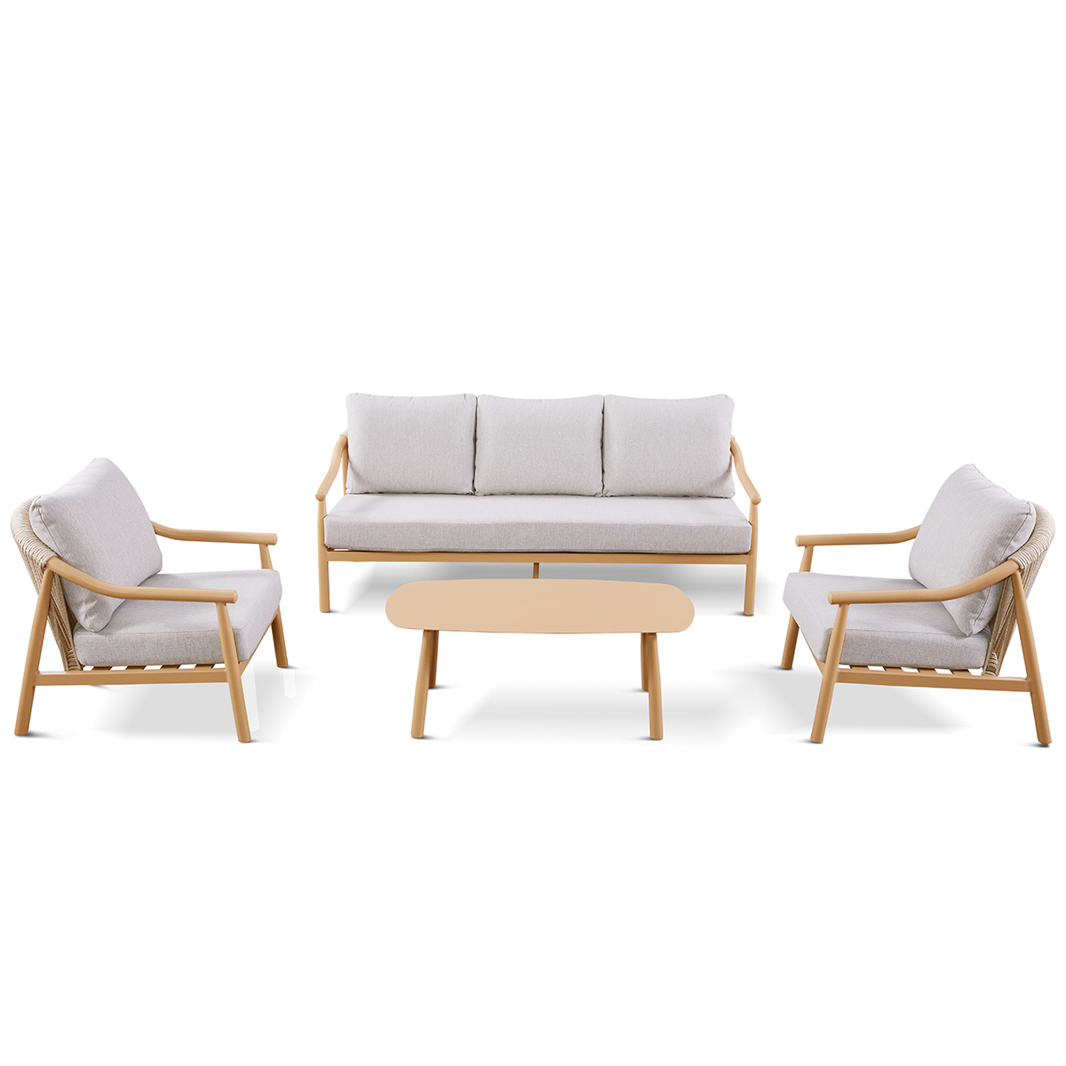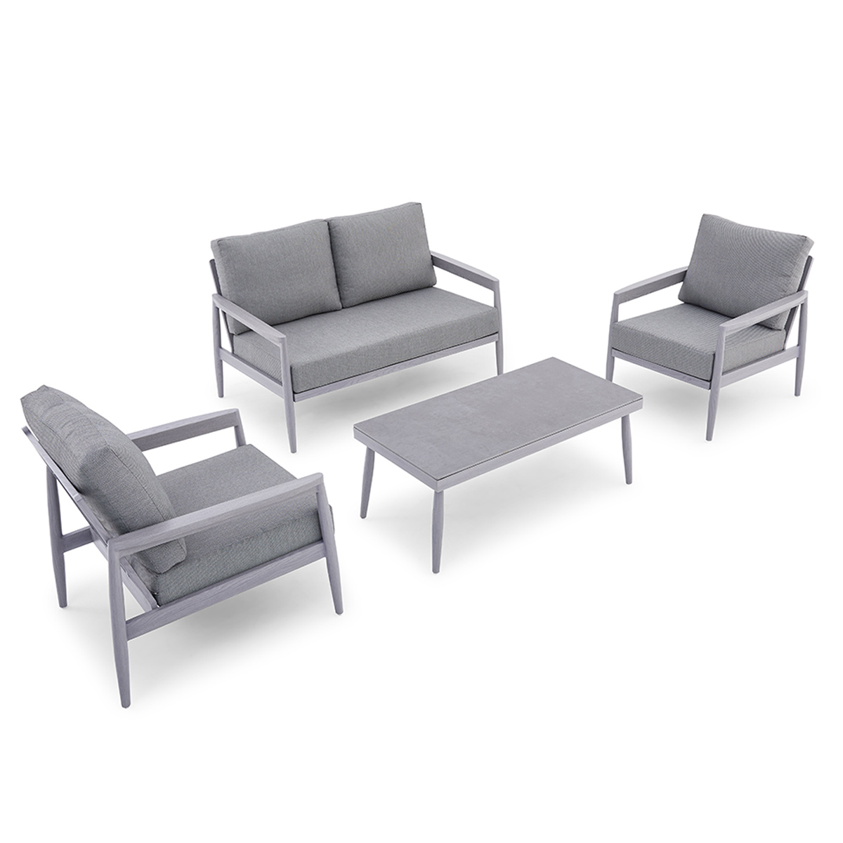 Akka Set : 3 seater + 1 seat + coffee table Akka Loveseat with FSC Teak Base in Green Akka