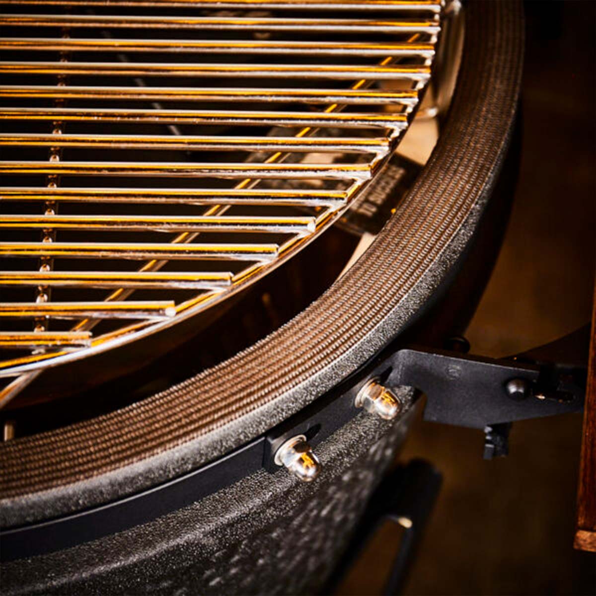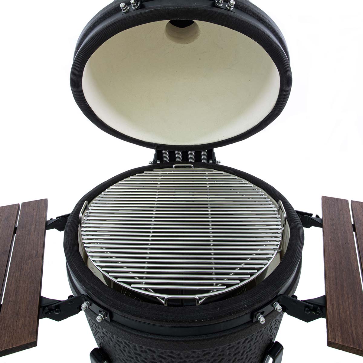 The grill grid of The Bastard Large is made of extra thick (7 mm) stainless steel. The cast-iron precision top allows precise and easy temperature control in the kamado.
