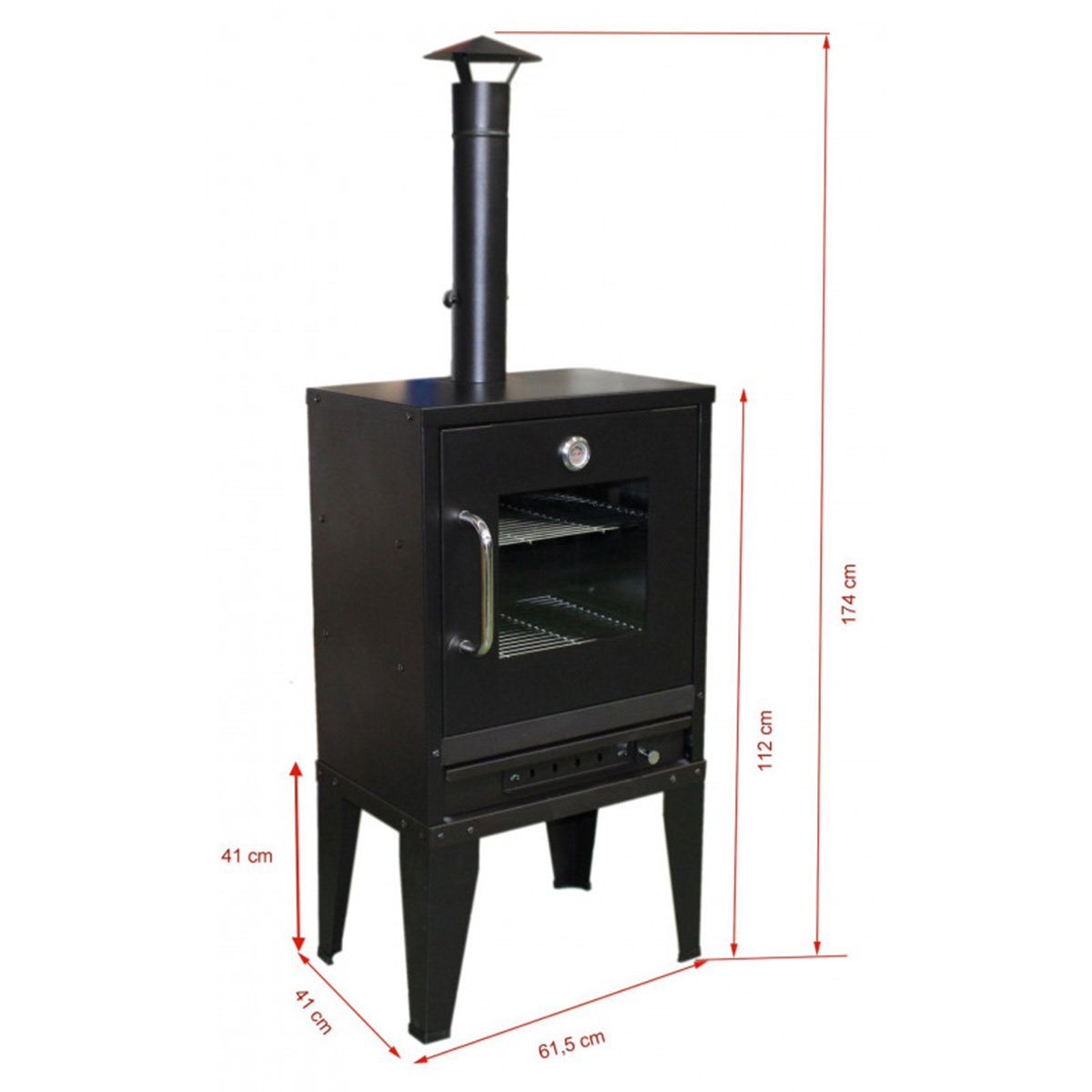 – The door is equipped with a tempered glass to allows us don not have to opent the door to control the roast.