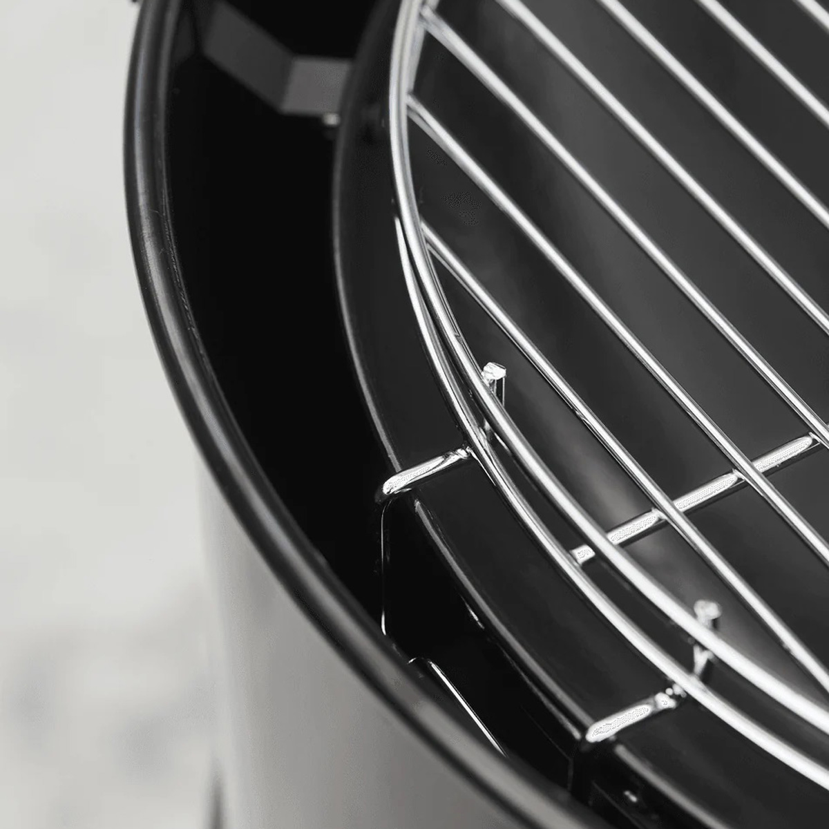The Edson charcoal barbecue is very easy to light thanks to the Barbecook charcoal starter. Place a few lighter cubes on your bottom grid and put the charcoal starter on it. Pour the starter full of charcoal. Then light the lighter cubes through one of the holes on the side of the charcoal starter. Now hot air will be dispersed through your charcoal. As soon as there is a layer of grey ash on the charcoal you can pour the coals into the bowl. Then add some extra charcoal or a few briquettes until the bowl is for about 50% full. Let’s grill!