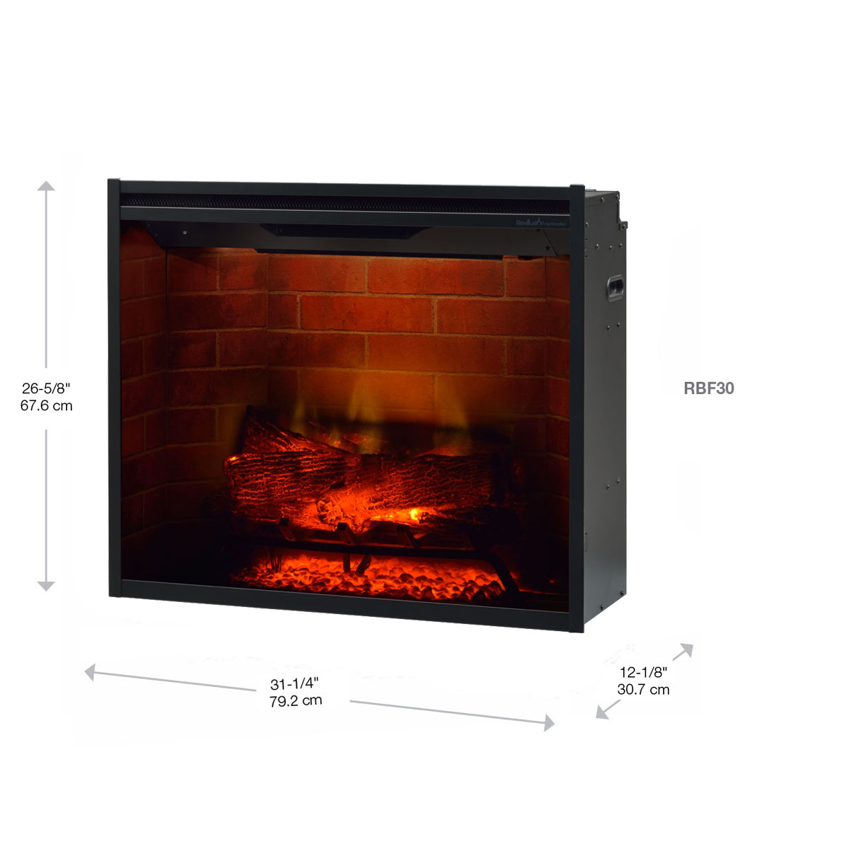 Revillusion is a completely new way of looking at fireplaces and changing the standard for electric fires. The plug-in electric firebox features our Revillusion technology with Realogs Plus a full grate of life-size hardwood cast logs. It includes built-in thermostat, on/off flame control and separate controls for flame speed, interior brightness and heater. A clear view through the lifelike flames captures the charm of a modern wood-burning fireplace. Change the mood of the room by customizing the firebox glow with a choice of warm hues and adjust the flame base red or blue great for all seasons.
