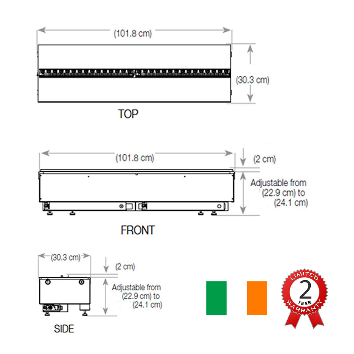 Dimensions: W 102 x H 30.3 x D 24.1 cm