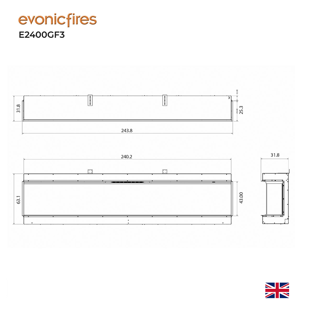EVONIC UK Electric Fire Multi-Sided 240