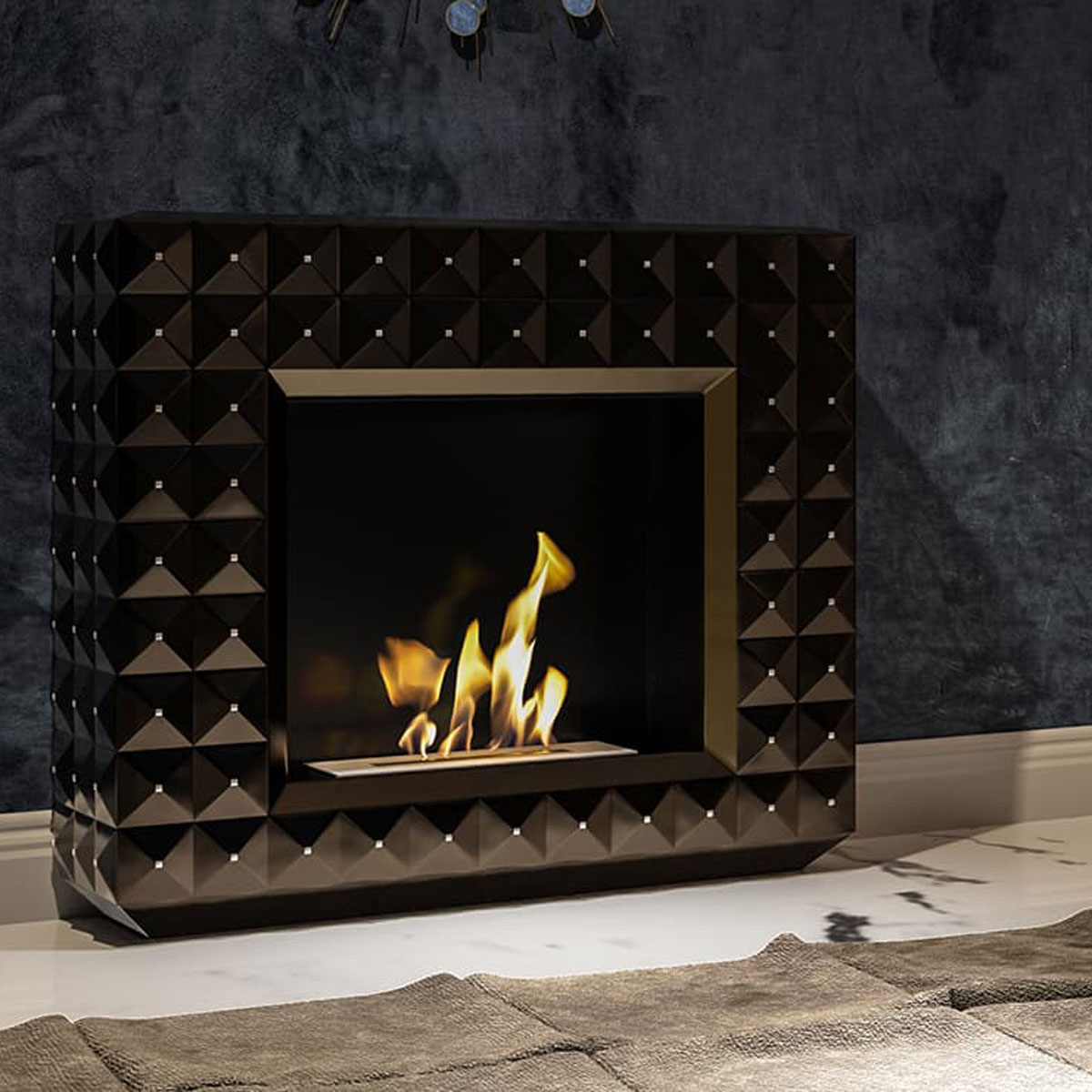 A biofireplace with TÜV has a reinforced special chamber that prevents pouring fuel as a result of accidental overflow. It also has a indicator of maximum biofuel rate and the absorbing insert, that reduces consumption and protects against spills as a result of tilting the device (even with burning fuel in a container).