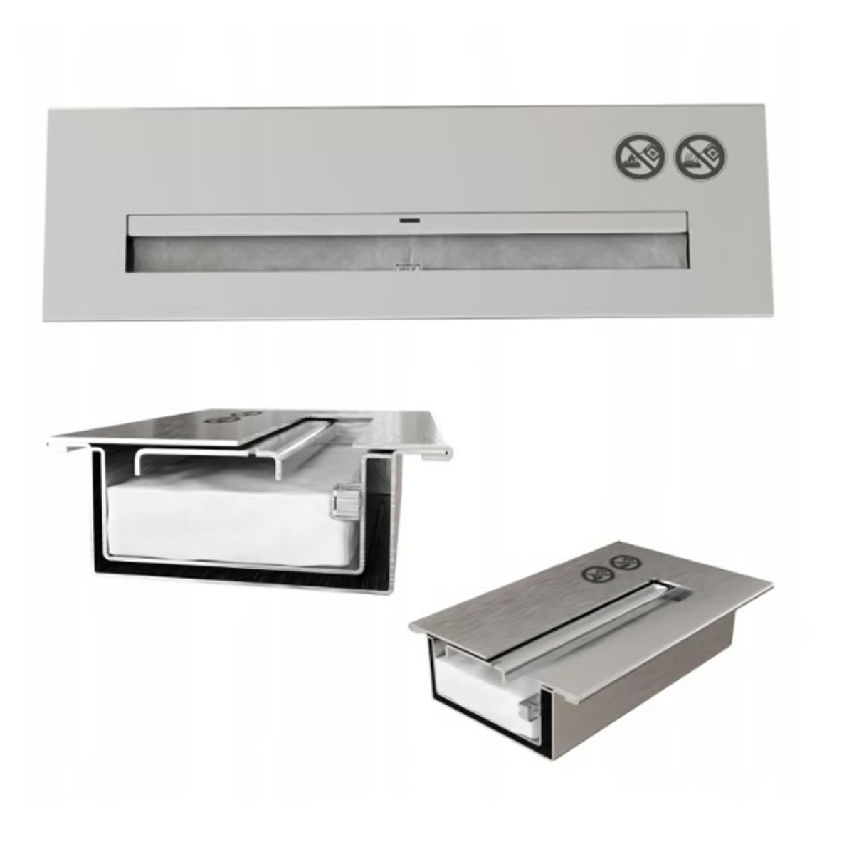 Biofuel container: absorbing insert placed in container provides safety of the biofireplace and eliminates any risk of spillage of fuel, even in case of biocontainer`s overturning. Biocontainer is made of stainless steel.