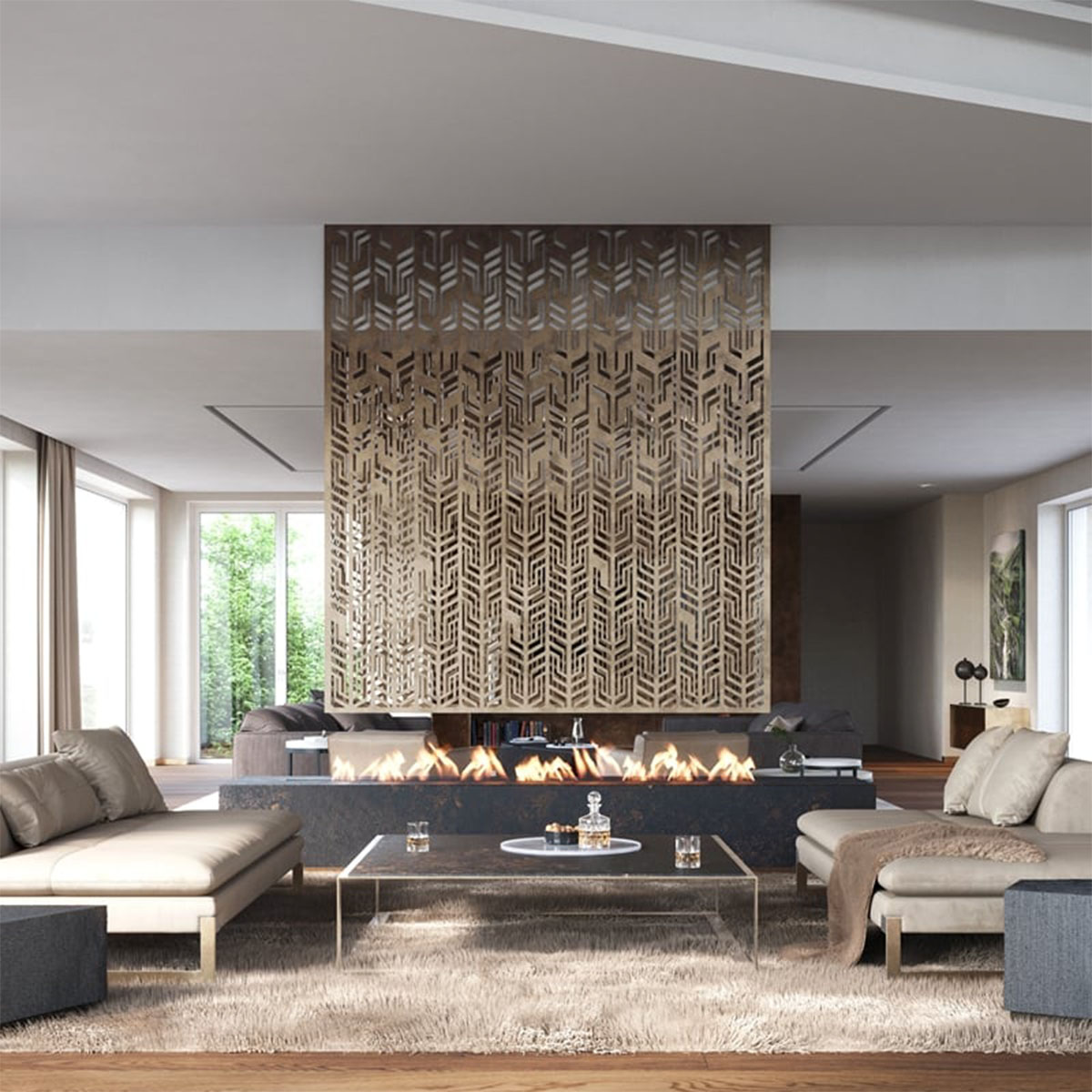 Inspirations ecological fire: the mix of the cultures and the atmospheres! This will be a great idea for super interior fire space design.