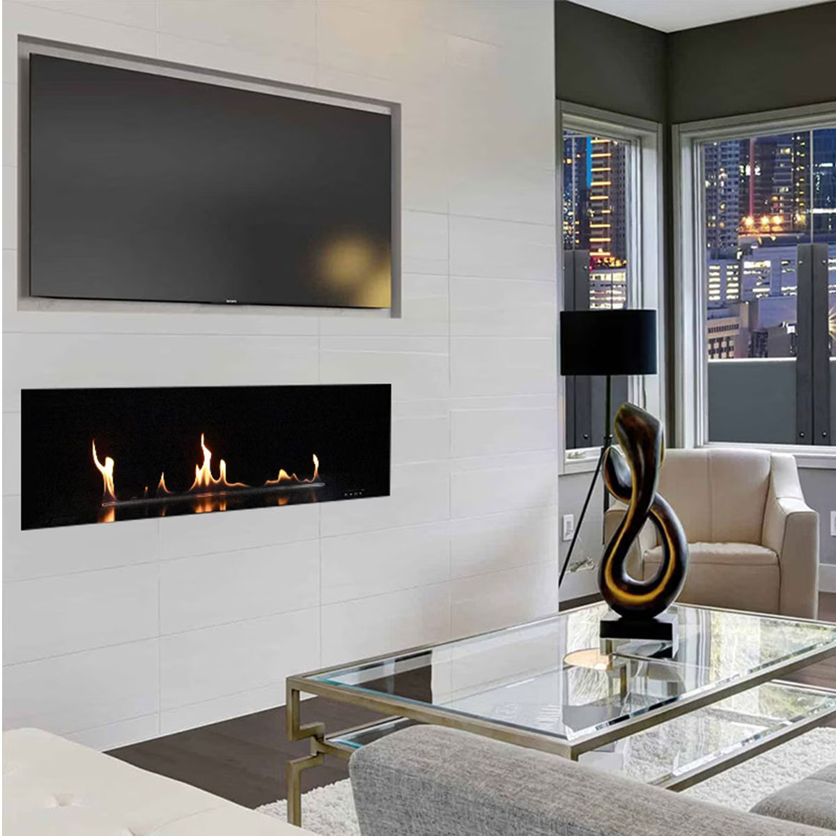 Bring the intimate atmosphere of this beautiful fireplace in your home and enjoy the pure coziness with flames of art ethanol Fireplace, Sitting together, Sharing the Happiness and Success with Your Family and Partners while drinking red wines, Talking, Playing, Laughing…