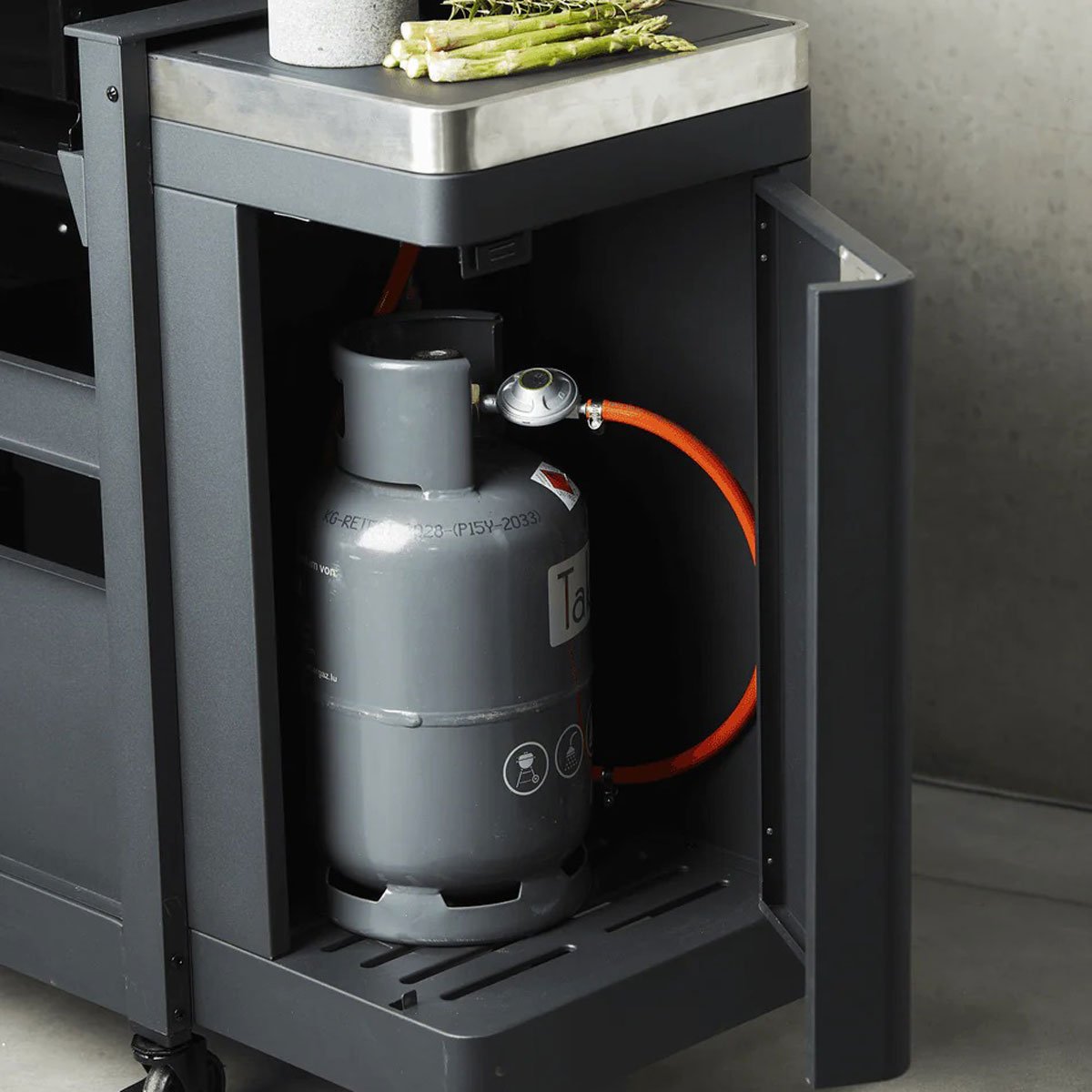 Lighting a Stella 3221 gas BBQ is very simple. It goes as follows: you first open the lid of your gas barbecue, then you turn on the tap of your gas bottle. Now you give the gas a moment to circulate inside your gas barbecue. Then turn the control knobs to the highest position. These are connected to the different burners of your Stella 3221 gas BBQ. When you see a flame, close the lid and let it heat up for about 10 to 15 minutes. After that, your grill session can begin! When working with a gas barbecue it is recommended to use propane gas. Don’t forget to buy a matching gas regulator. This ensures that the pressure on the gas bottle is reduced. The pressure in a gas bottle is often much higher than what a barbecue needs. Be sure to check the date on the gas hose regularly. Regular gas hoses have a lifespan of 5 to 10 years.