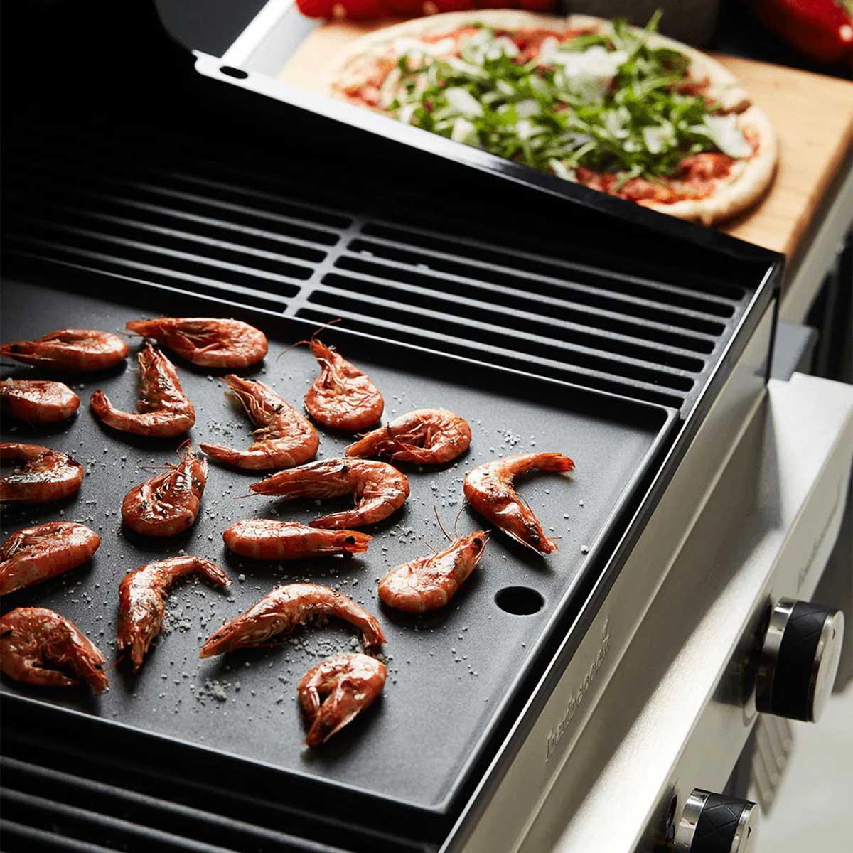 The star product of Barbecook is without doubt the Stella gas BBQ: a beautiful appliance with a matt black finish and silver-coloured details, extremely user-friendly and of the highest quality. This gas barbecue lights up in 1-2-3 and guarantees an exceptionally good grilling result. The appliance has enameled cast-iron grids and the central, warmest space – the Dynamic Core Grill – is designed in such way that the grid can be removed and replaced by handy tools such as a pizza plate or cooking plate. In short, with the Stella gas BBQ you can go all the way! Thanks to the enameled, double-walled lid and the built-in thermometer, you retain maximum control over your preparations. Not all ingredients have the same cooking time, so some dishes will be ready sooner than others. No problem, keep the ingredients that are already done, warm on the specially provided warming rack inside your gas barbecue. Grilling will also release a lot of fat. This fat is collected in the integrated drip tray of the appliance. After your BBQ session, simply put the drip tray in your dishwasher. It is also nice to know that all Stella gas BBQ models can be combined with Barbecook’s rotisserie set.