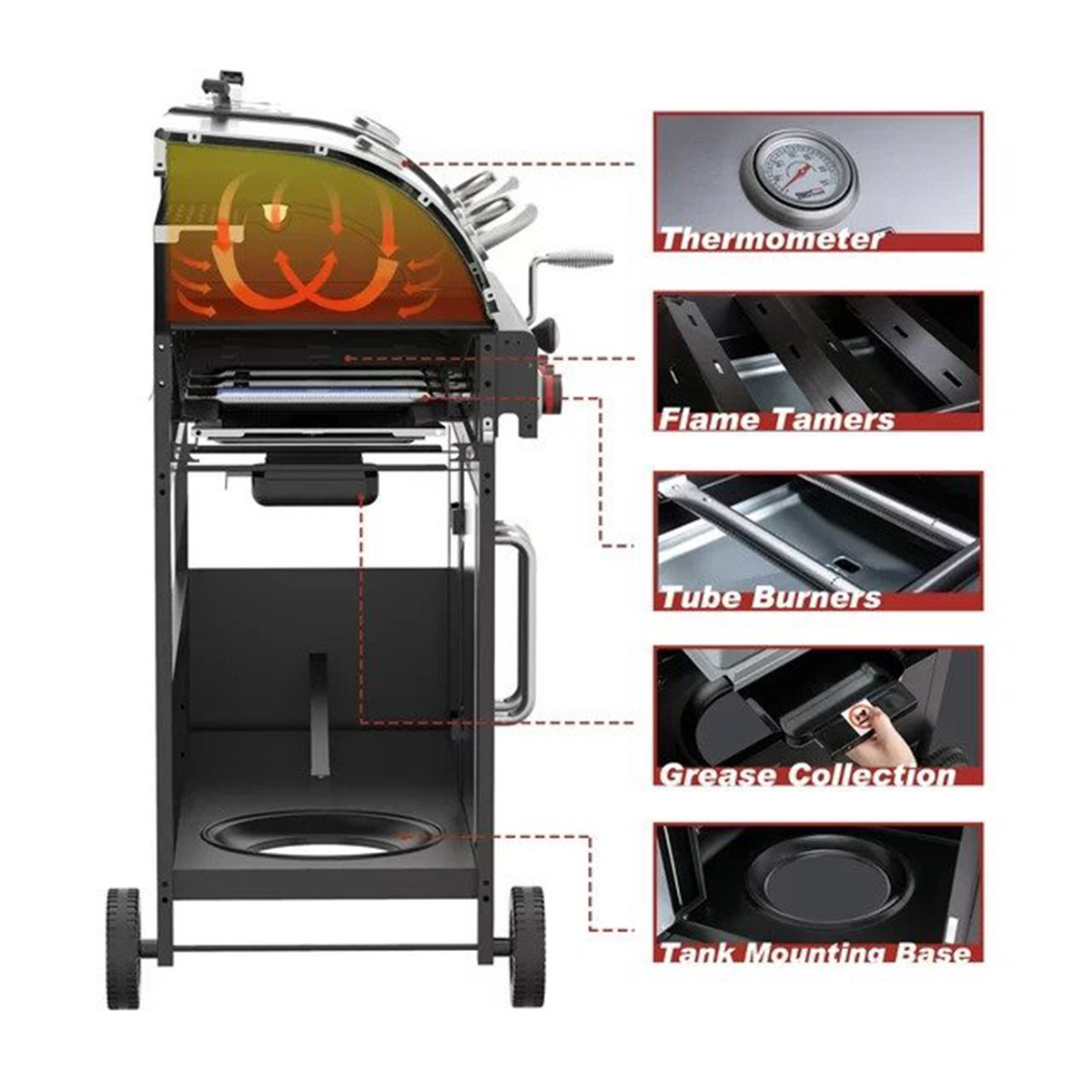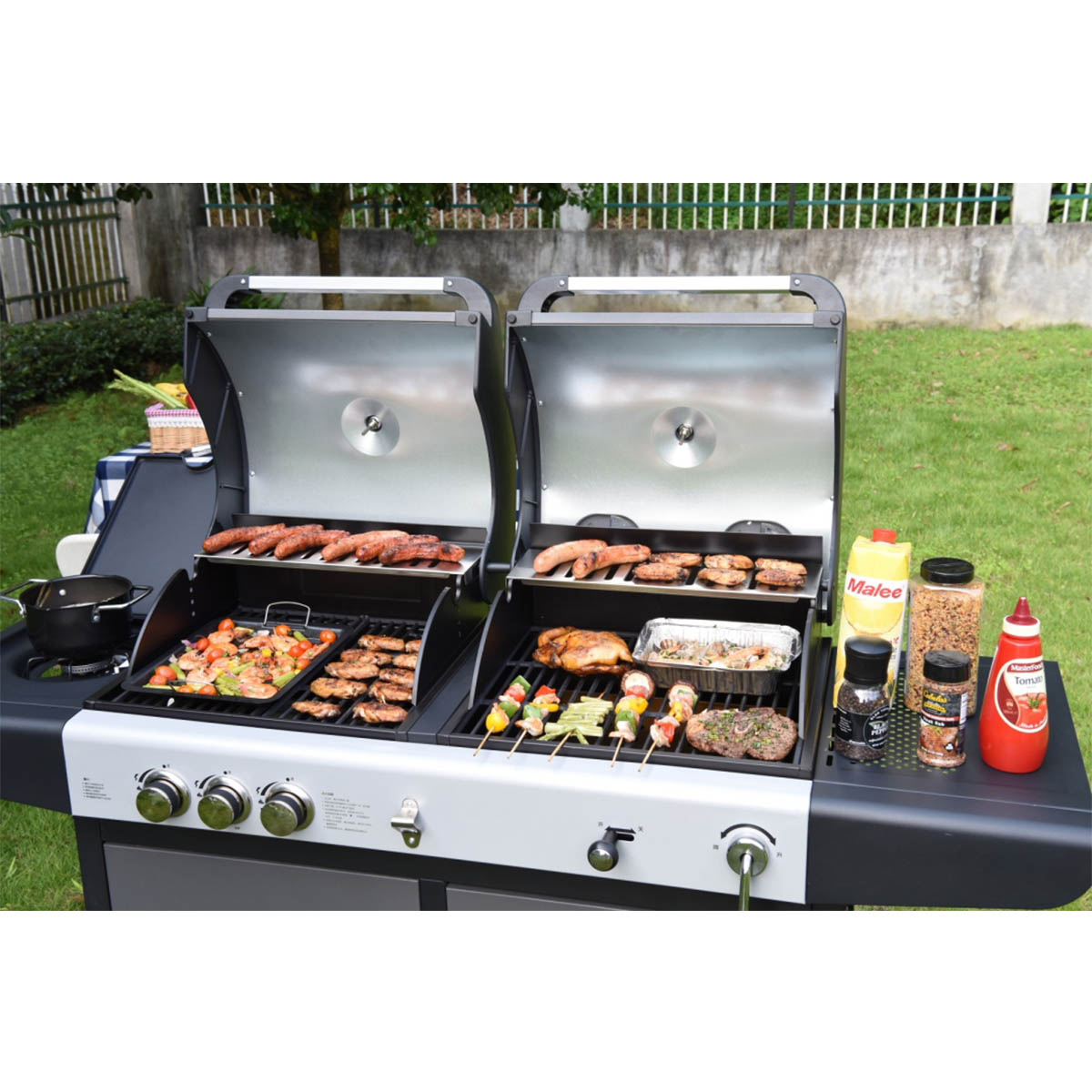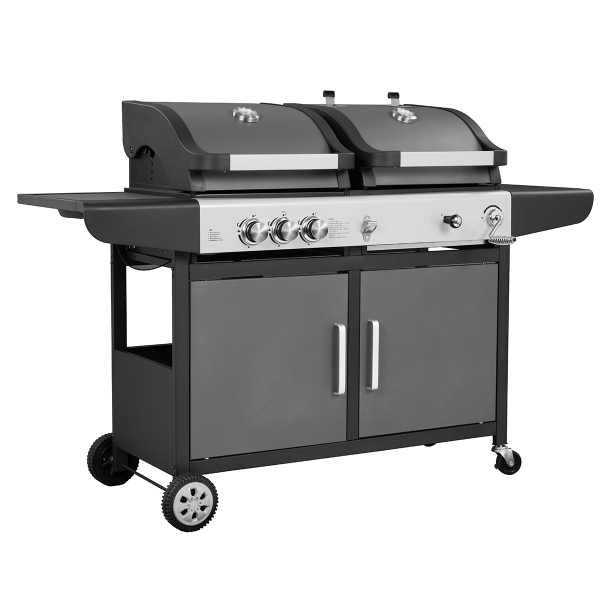 Cooking grid: GAS: 2pcs enamel cast iron grid; CHARCOAL: 2pcs enamel cast iron.