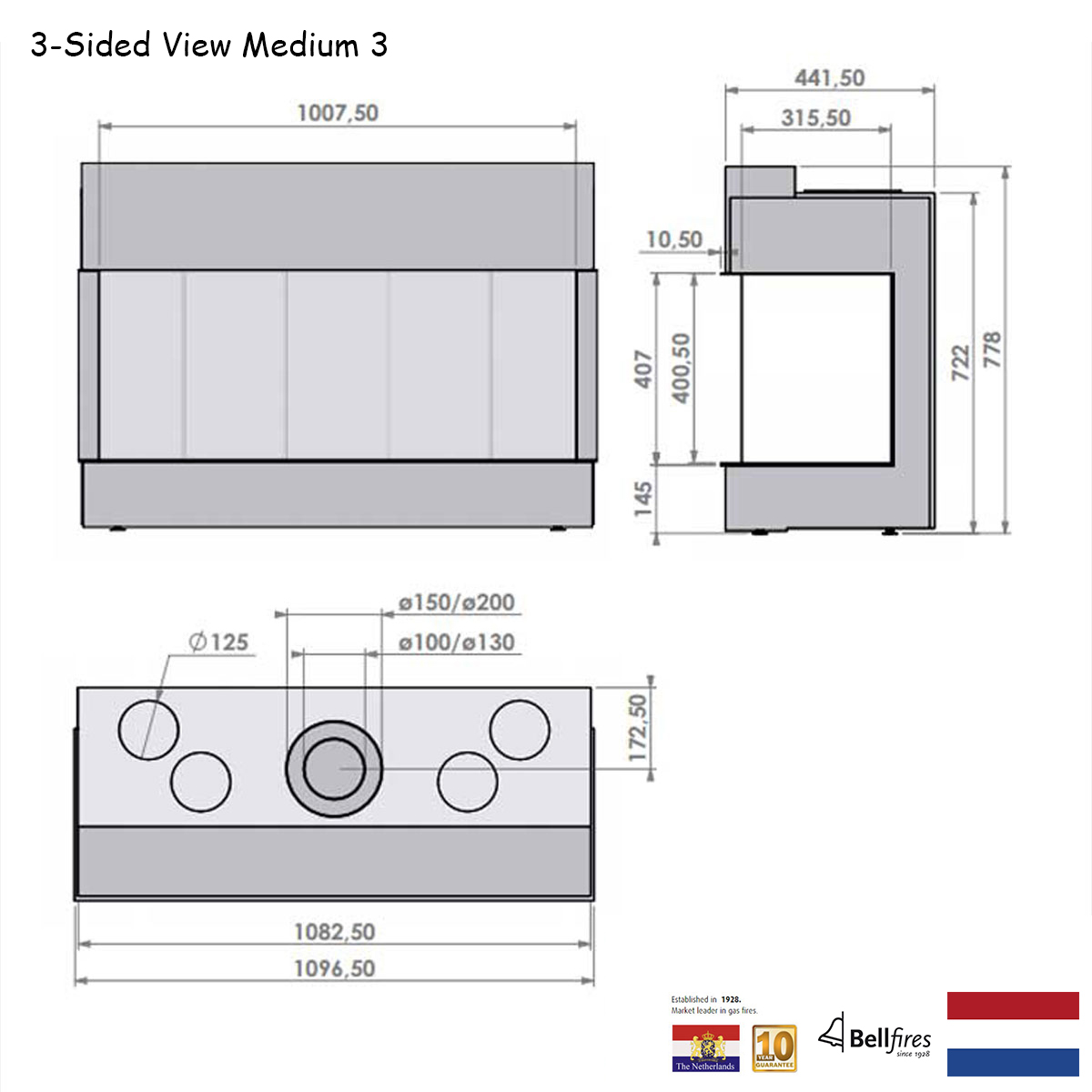 BELLFIRES HOLLAND Gas Fire 3-Sided View Medium 3, Panel