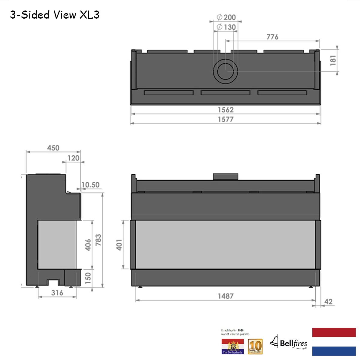 – Burner decoration: ceramic logs / grey stones / white marble shingles