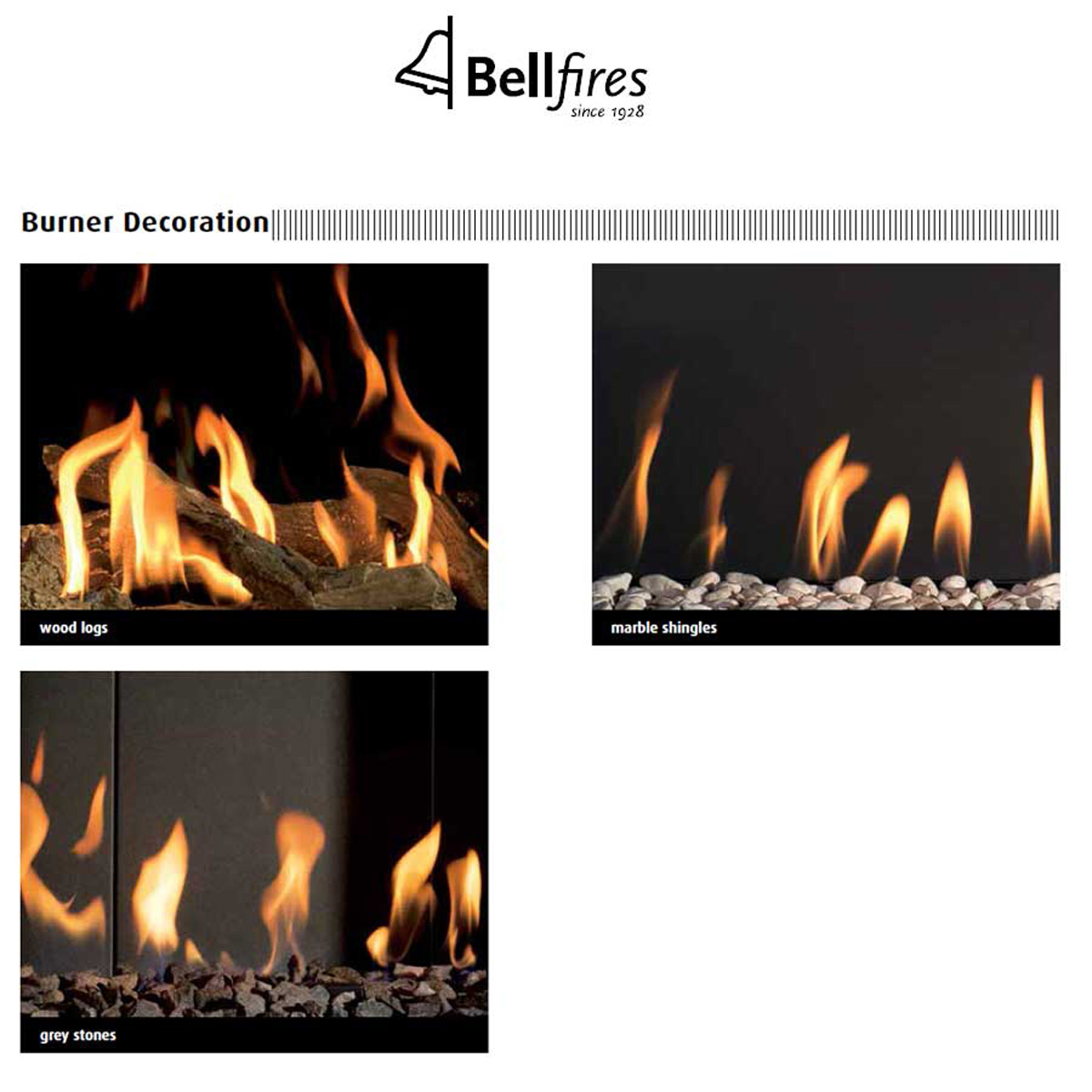 – Burner decoration: ceramic logs / grey stones / white marble shingles