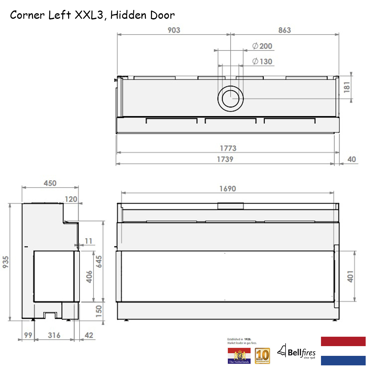 BELLFIRES HOLLAND Gas Fire Corner right XXL3 Right, Hidden Doo
