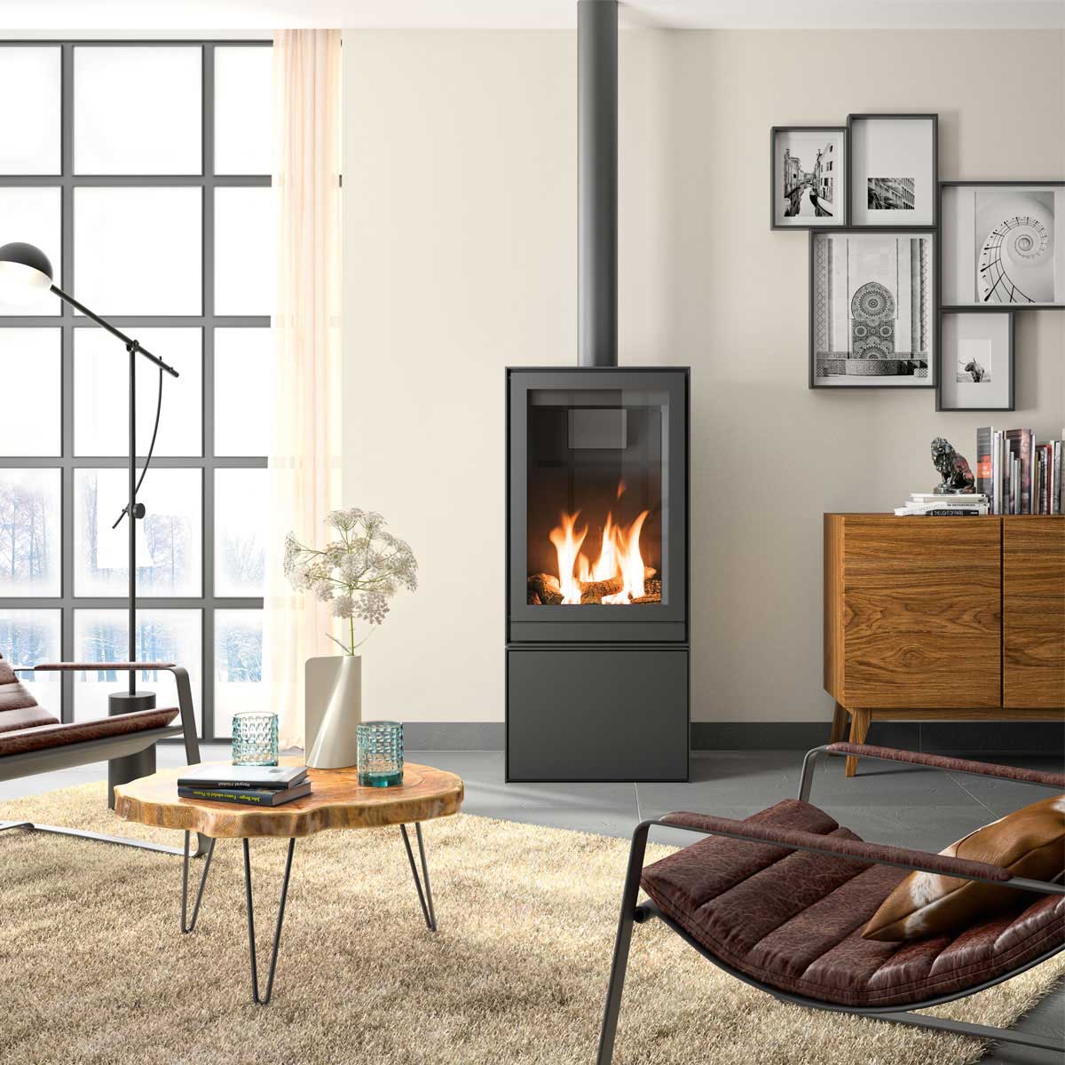 The contemporary gas stoves of the TQH line offer great power and can be integrated into all living spaces, giving the fire an elegant and balanced touch.