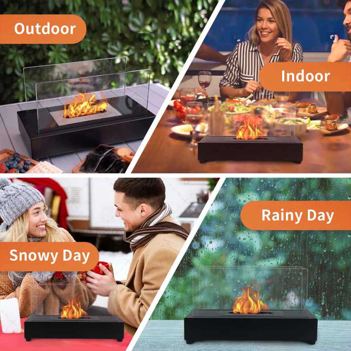 This vent free portable tabletop fire pit bio ethanol fireplace can be used indoor or outdoor.