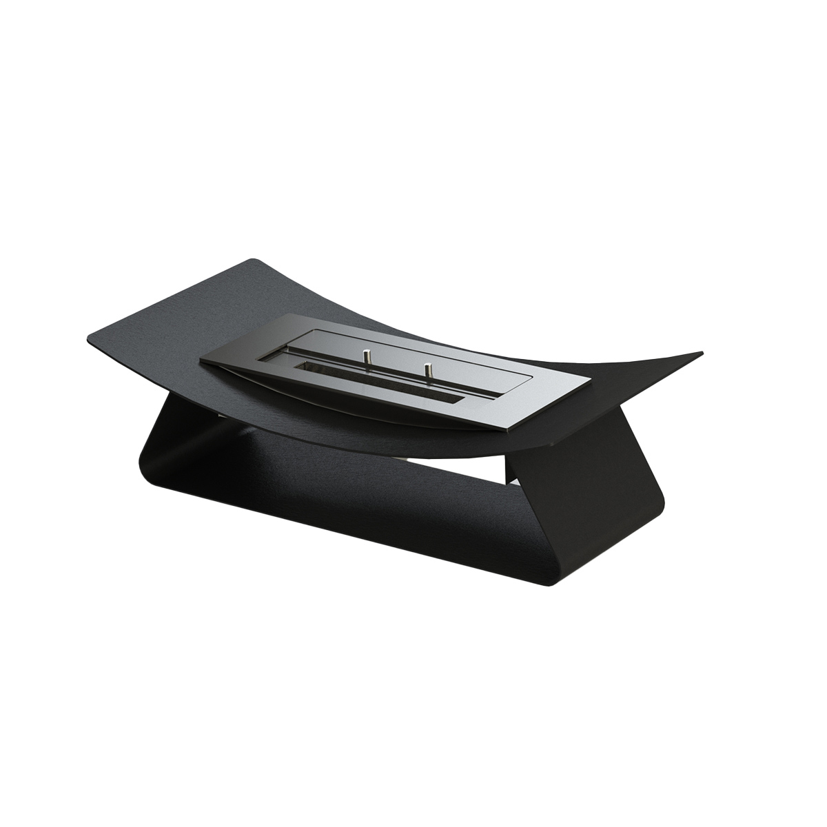 This is a free standing fireplace that can be placed on the floor or on a low coffee table.