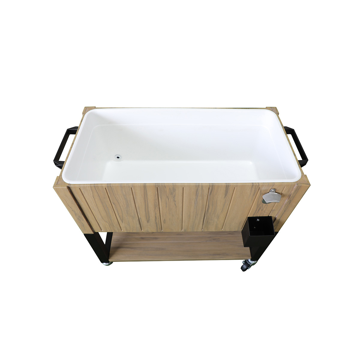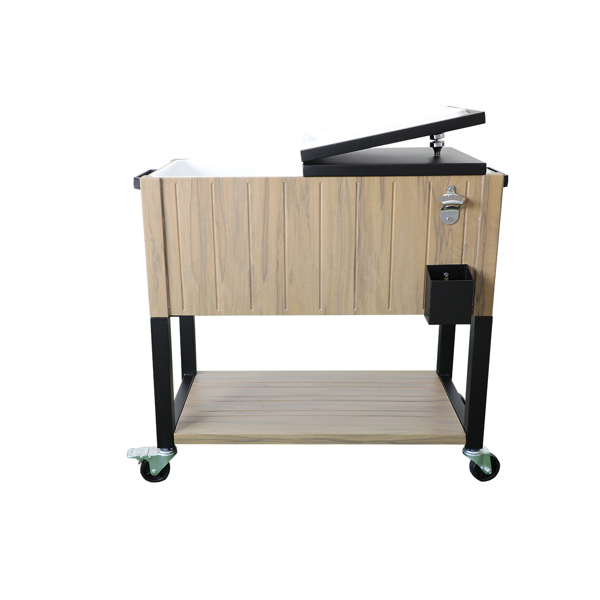 -Box, cover plate, foot, bottle cap box, tray material iron spray plus wood grain transfer; Cover handle plastic chrome.