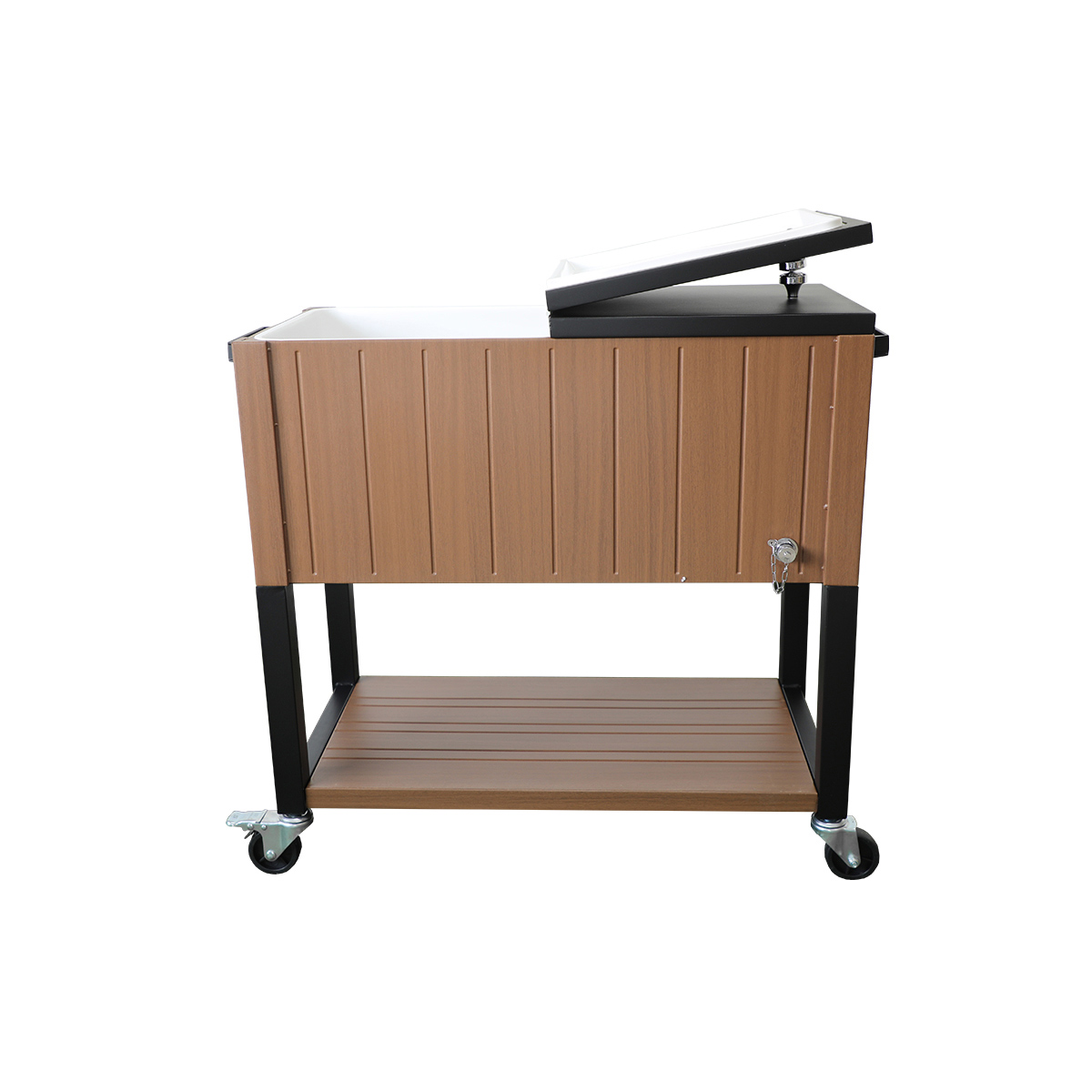-Box, cover plate, foot, bottle cap box, tray material iron spray plus wood grain transfer; Cover handle plastic chrome.