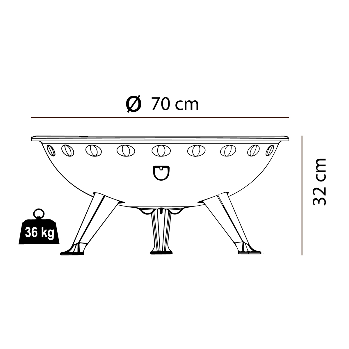 For stability and for its proper functioning, the Brasero is equipped with 3 cast iron feet, a tank aerator and an ash removal function.