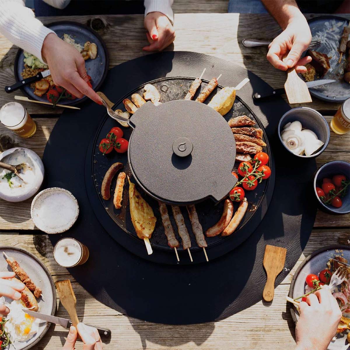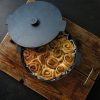 This set consists of two sleek cast iron pans with diameters of 21cm and 26cm. The pans are perfectly suited to be used on the OFYR cooking plate to prepare all kinds of dishes. The pans are characterized by perfect heat distribution. The knob on the lid of the pan can become very hot. Therefore, use heat-resistant gloves such as the OFYR gloves to remove the hot lid.