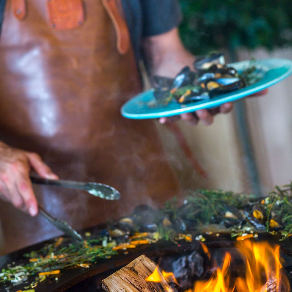 Food scraps and excess oil go straight into the fire – all you need to do is wipe the OFYR cooking plate with a damp cloth and it’s ready for the next occasion.