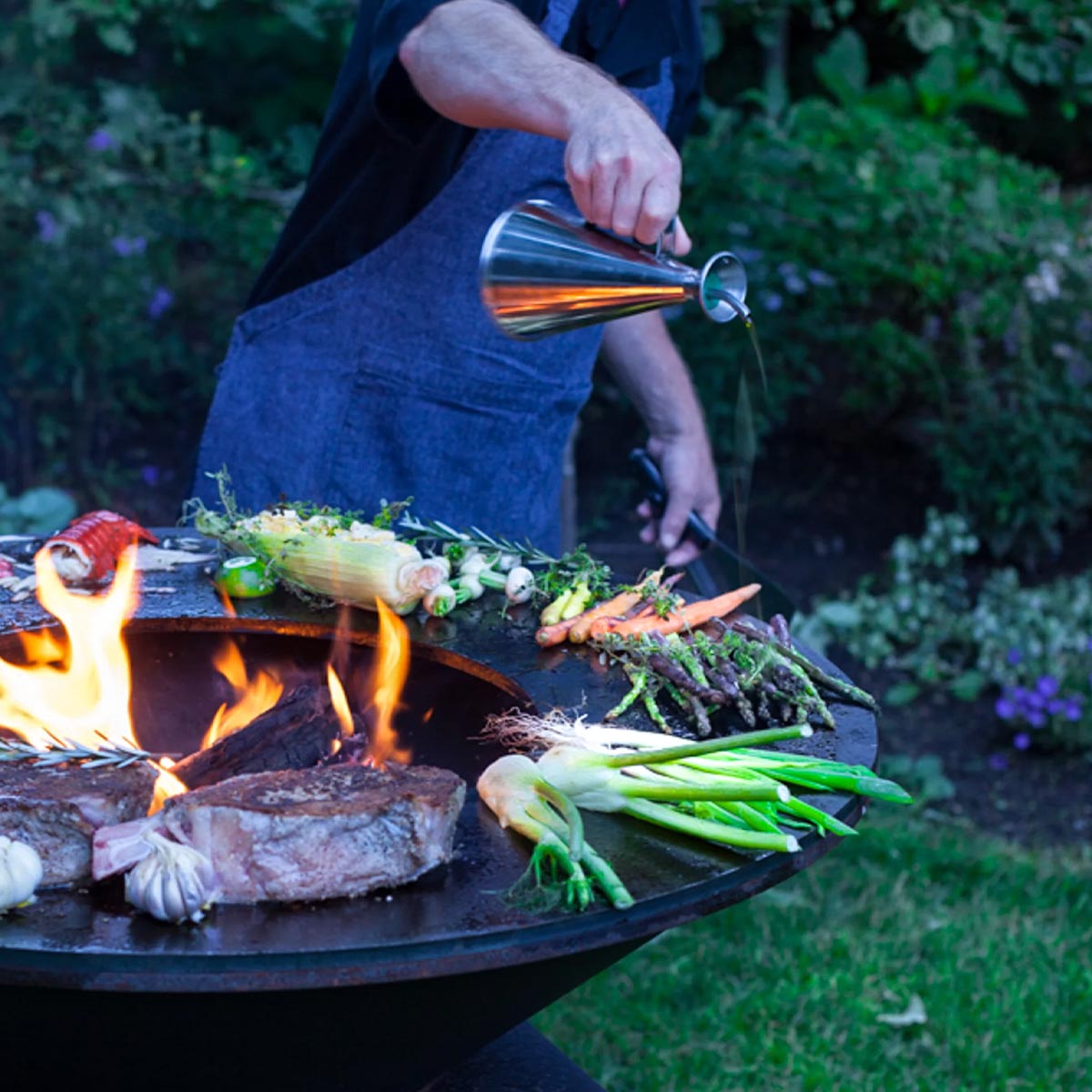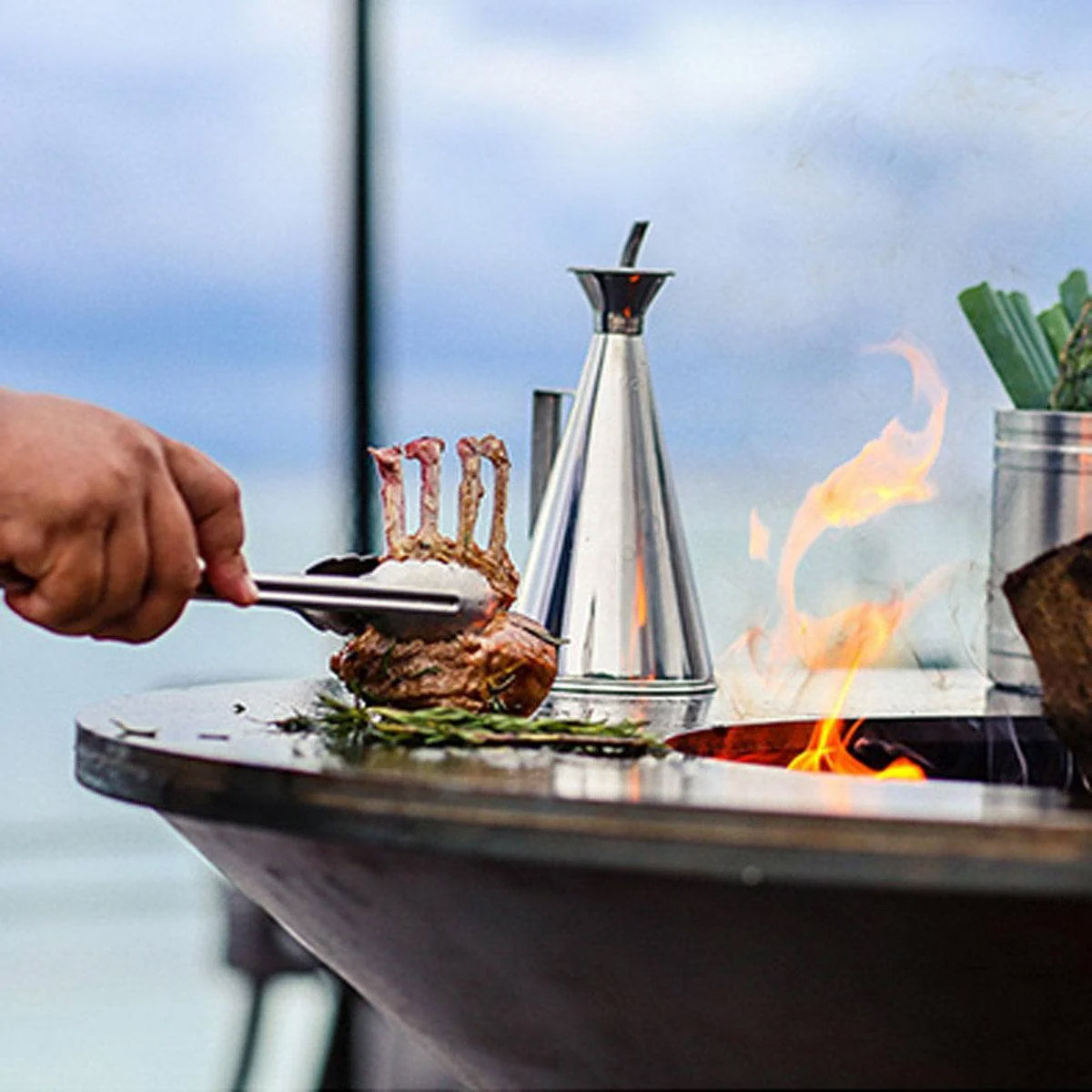 Beautifully designed stainless-steel oil can; ideal to add oil on the cooking plate.