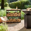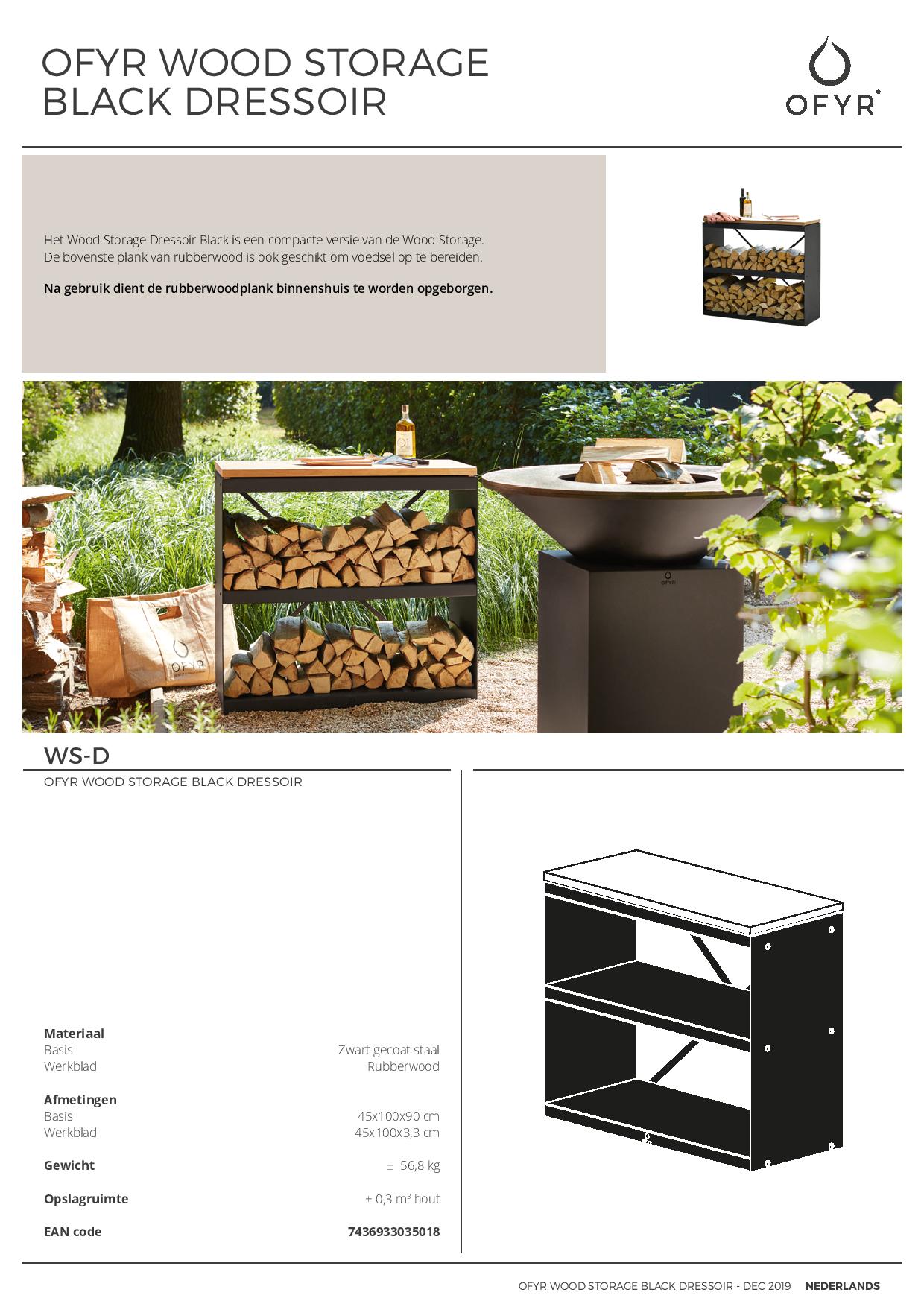 The Wood Storage Dressoir is a compact version of the Wood Storage with on top a teakwood board that can also be used for food preparation and is 90 cm high. The teakwood board should be stored indoors after use.