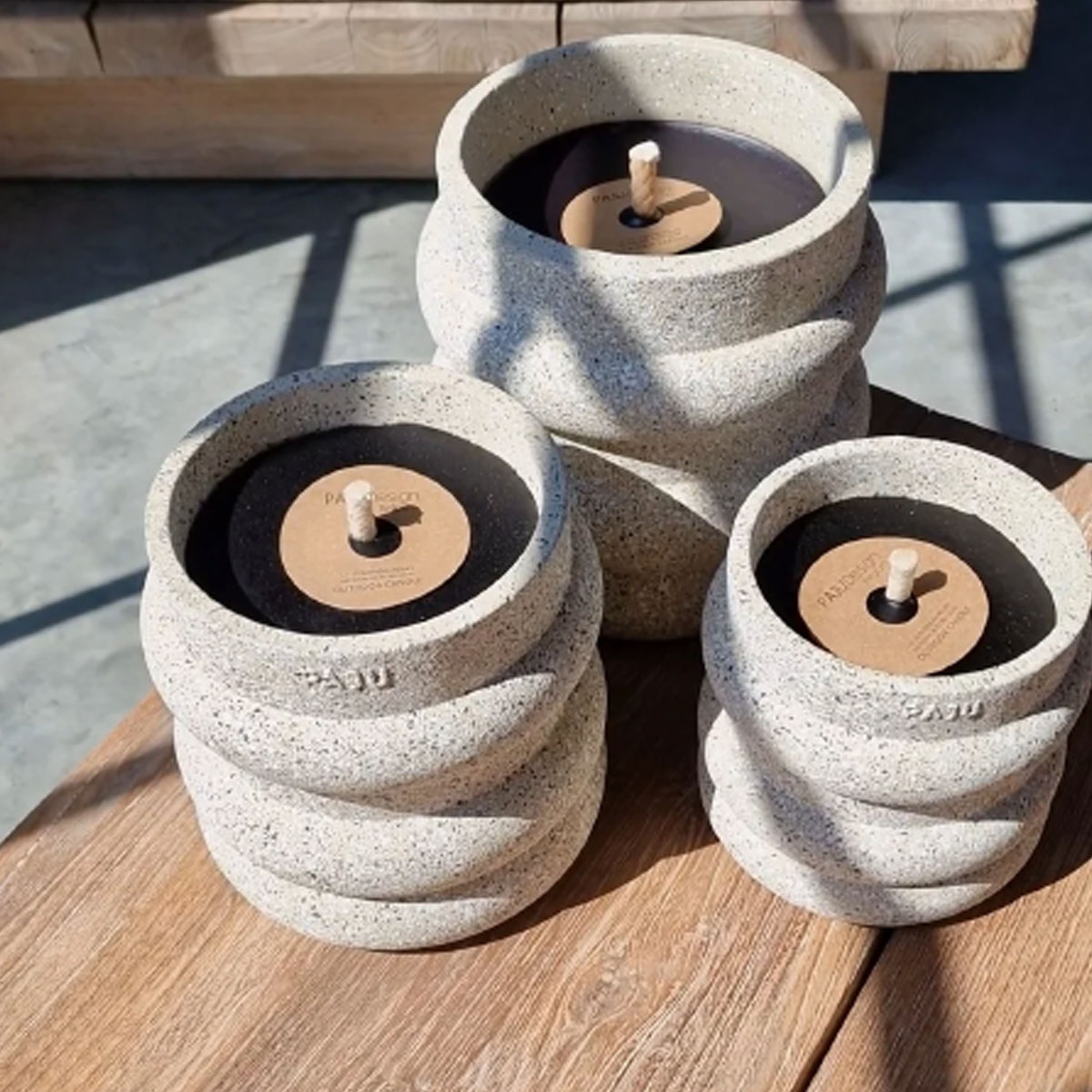 The exterior of the outdoor candles is made from sustainable materials, while the pure wax is made from black paraffin. PAJU is an exclusive addition for your outdoor furniture set, handcrafted to create an enchanted and relaxed atmosphere. Choosing PAJU products creates a warm and homelike feeling in your outdoor areas – and it will invite your guests to sit down and enjoy moments together. Can you think of something better than spending warm summer nights with your friends and family in the open air? Enjoy your garden and terrace with our beautiful designs.
