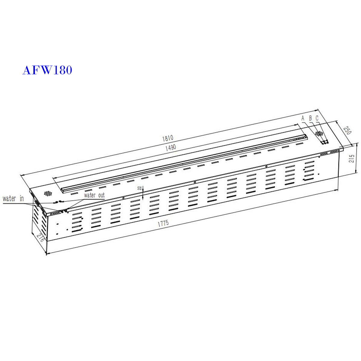 Dimensions: W 181 x H 21.5 x D 25 cm