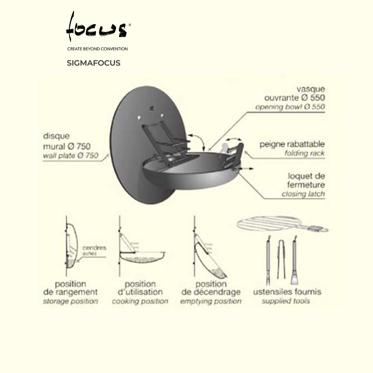 Attractive in both open and closed positions, the Sigmafocus offers a range of cooking heights. It is easy to attach to any wall (there are only two fixation points).