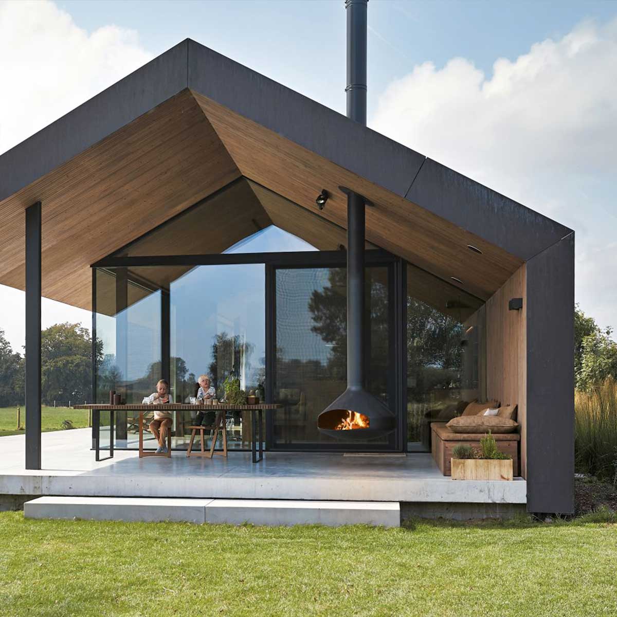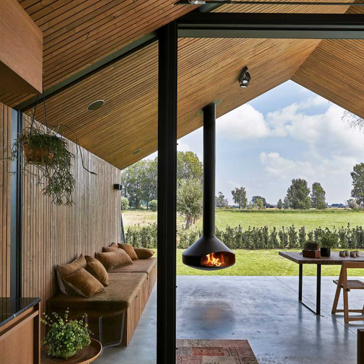 The elegant shape of this open fire maximises its efficiency, and its pure lines are perfectly proportioned.