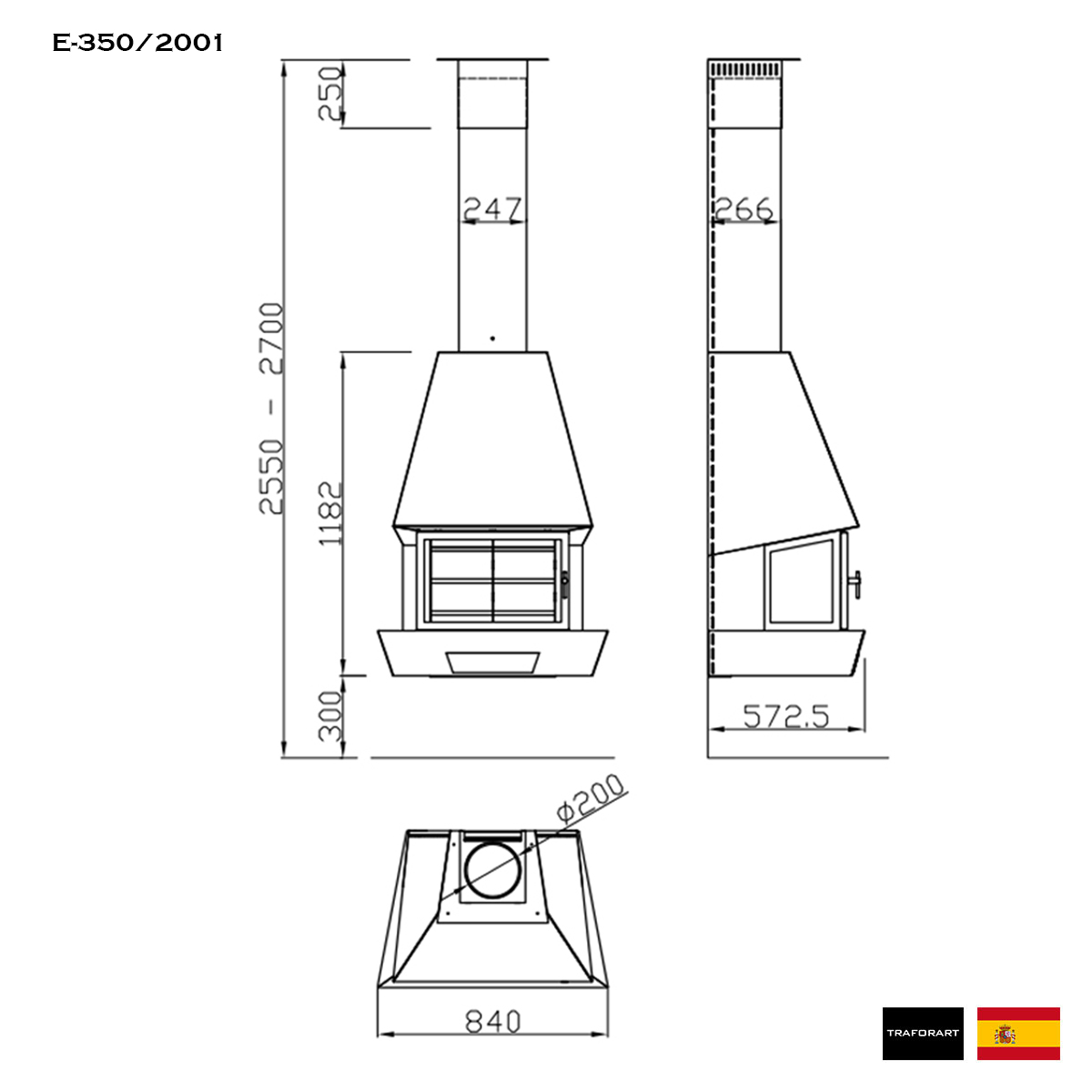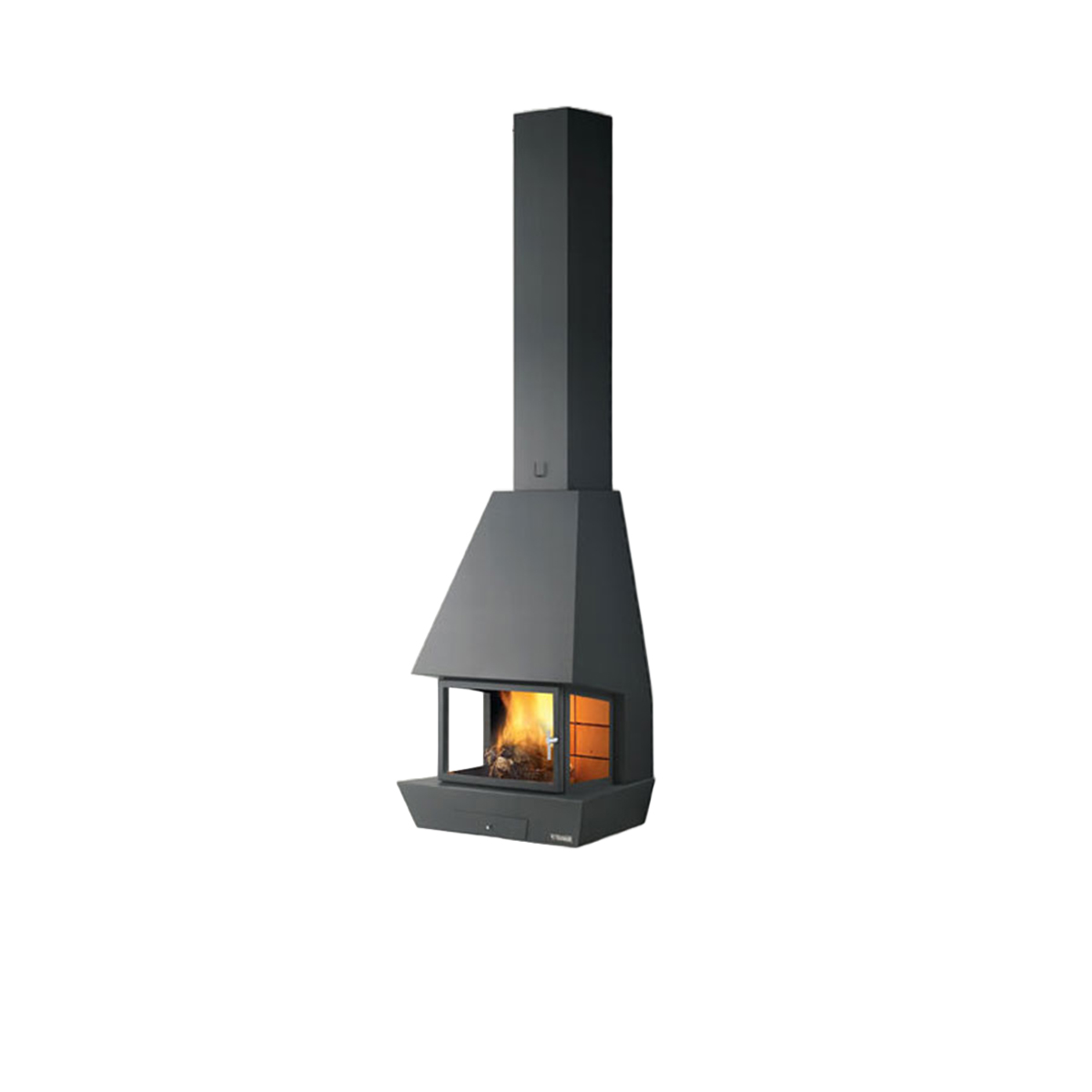 All metal fireplaces produced by Traforart have always been designed to offer the greatest possible heat without reducing the fire view.