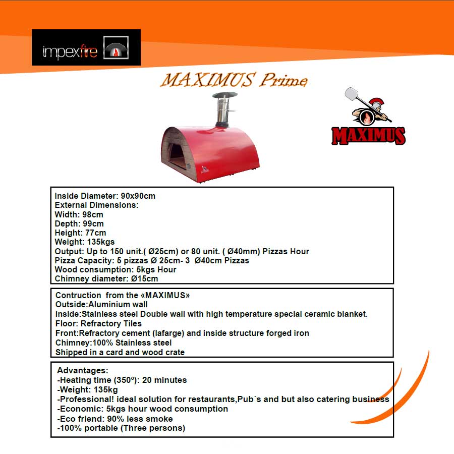Pizza Capacity: 5 pizzas 25 cm or 3 pizzas 40 cm