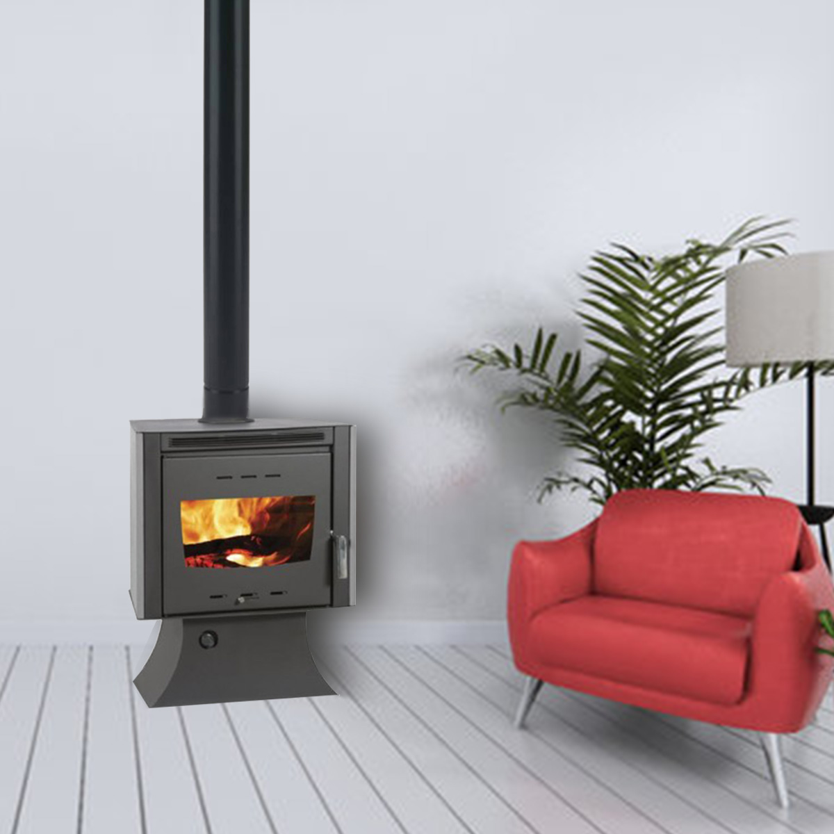 The combustion area is made of vermiculite and steel at 4mm its thermal power is 15kw while the degree of efficiency reaches 79.48%