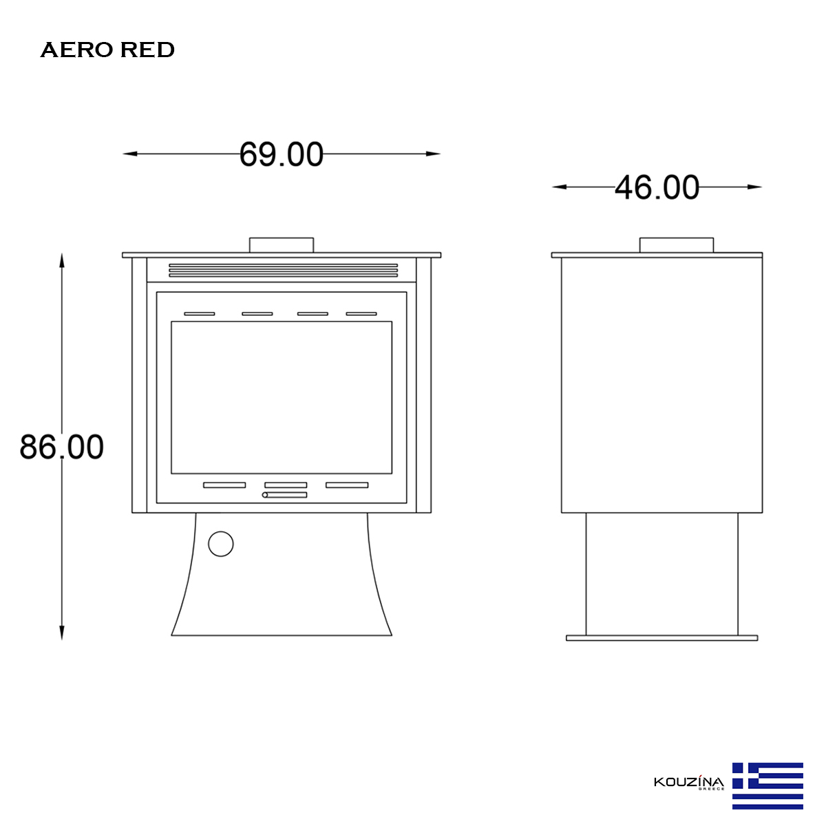 Combustion Chamber: W 55 x H 33 x D 33 cm
