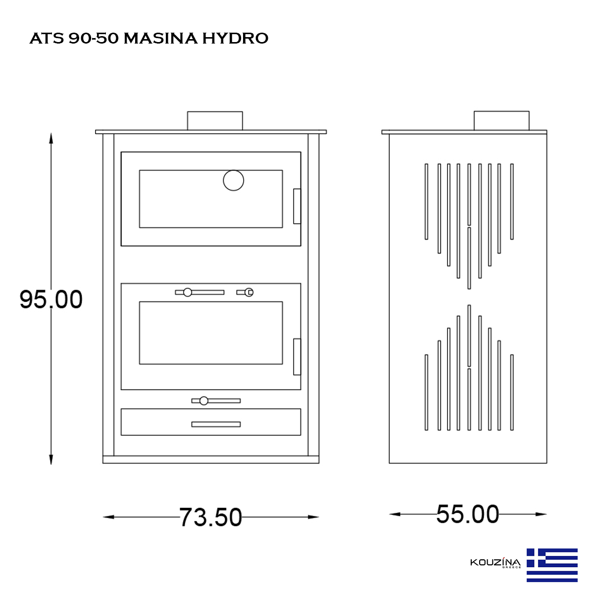 THE STEEL WOOD HEATER WITH BOILER AND OVEN HYDRAULIC MACHINE 90-50 can heat your space through the radiator circuit.