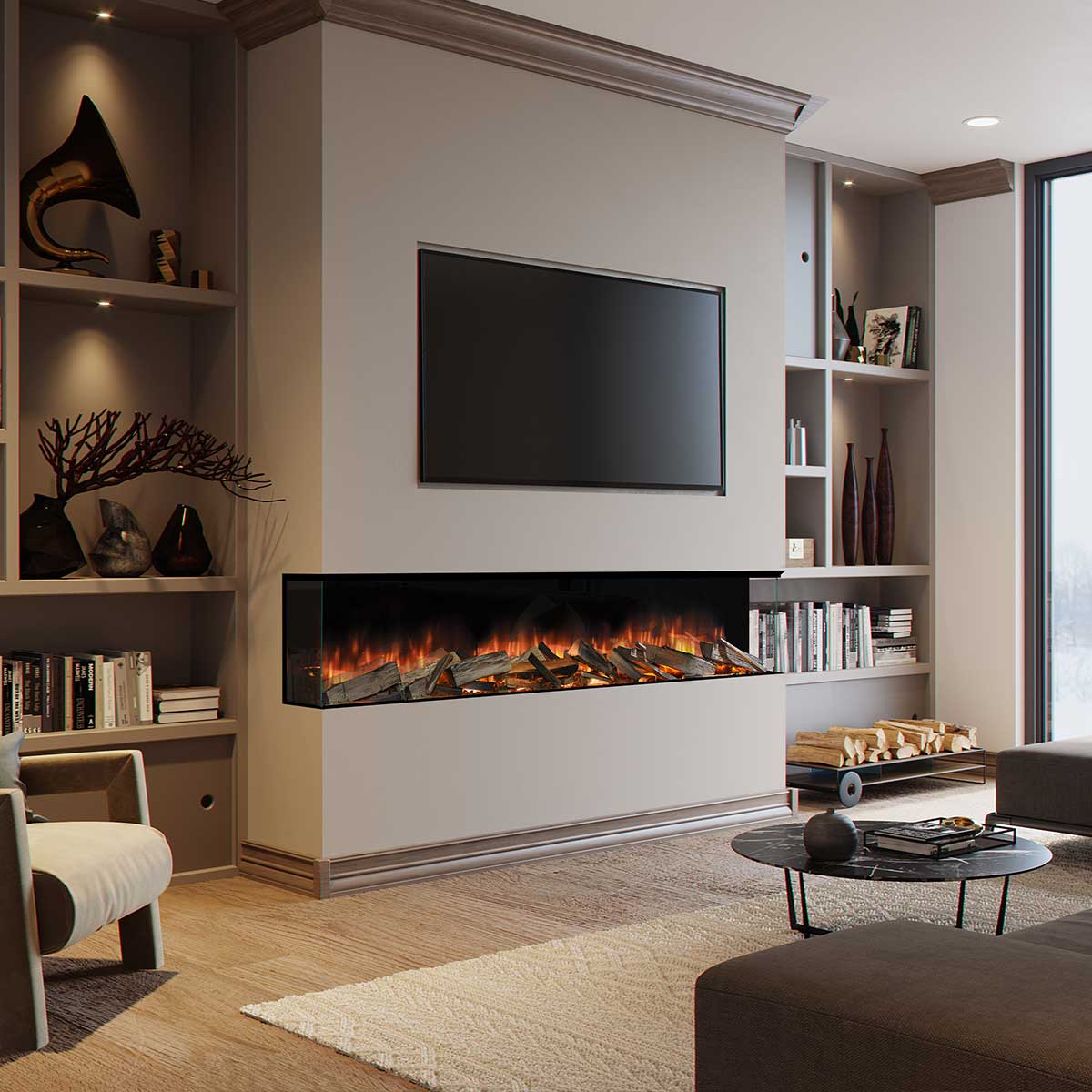 A stunning fireplace solution that seamlessly combines form and function.