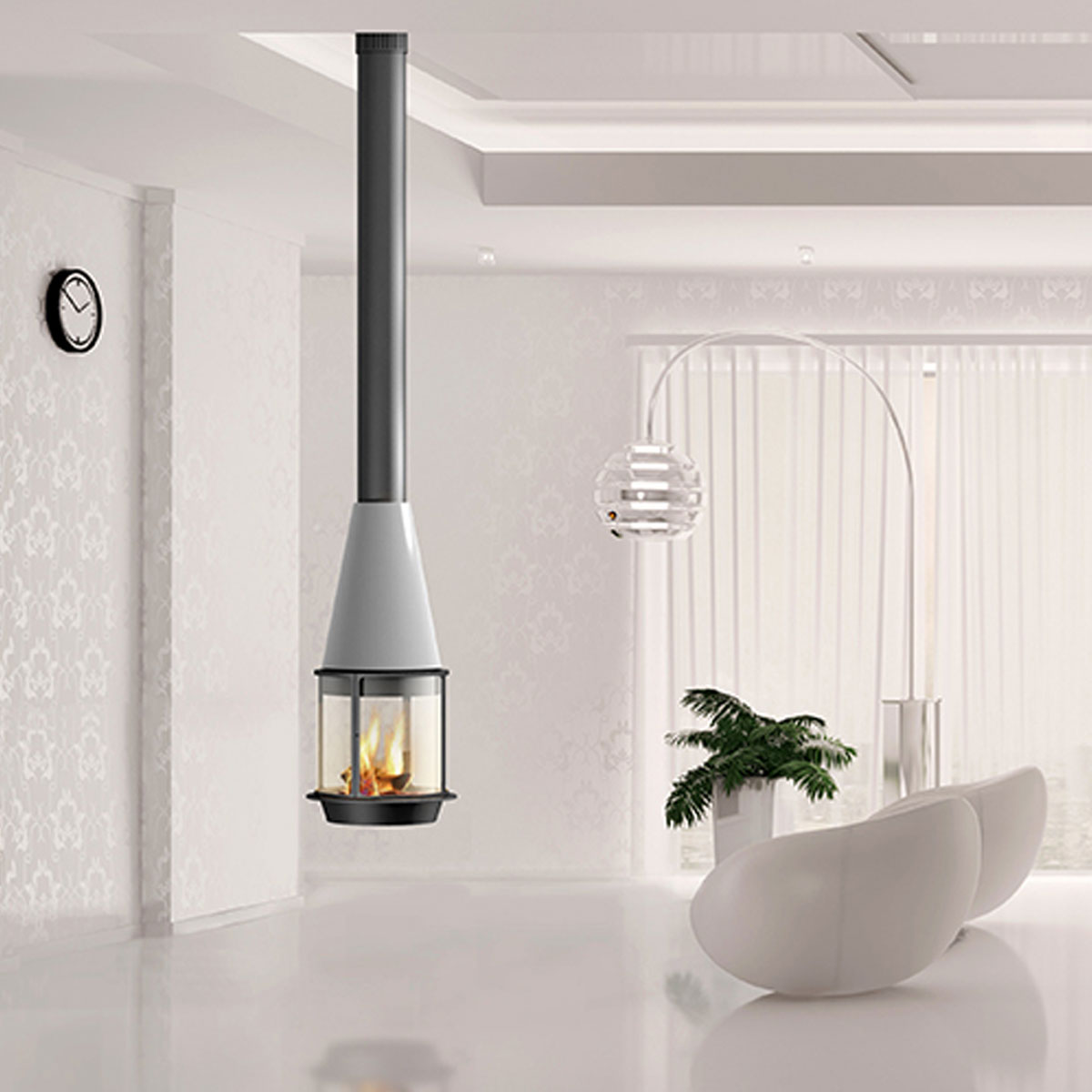TRAFORART SPAIN Wood Fire Central Arlete 121 With Glass White
