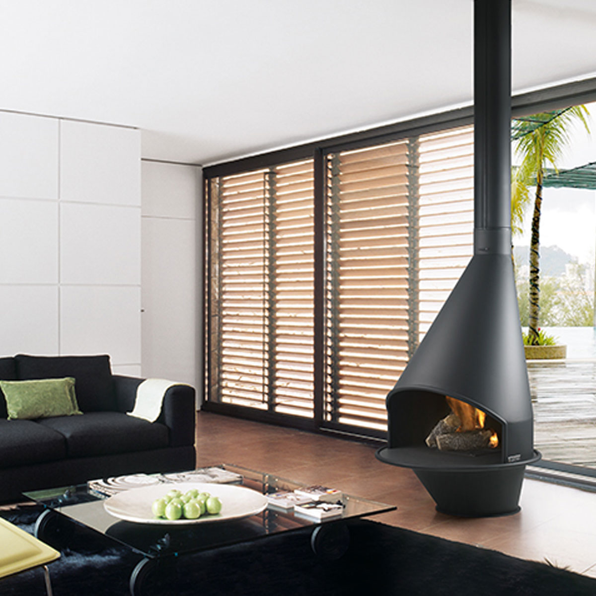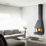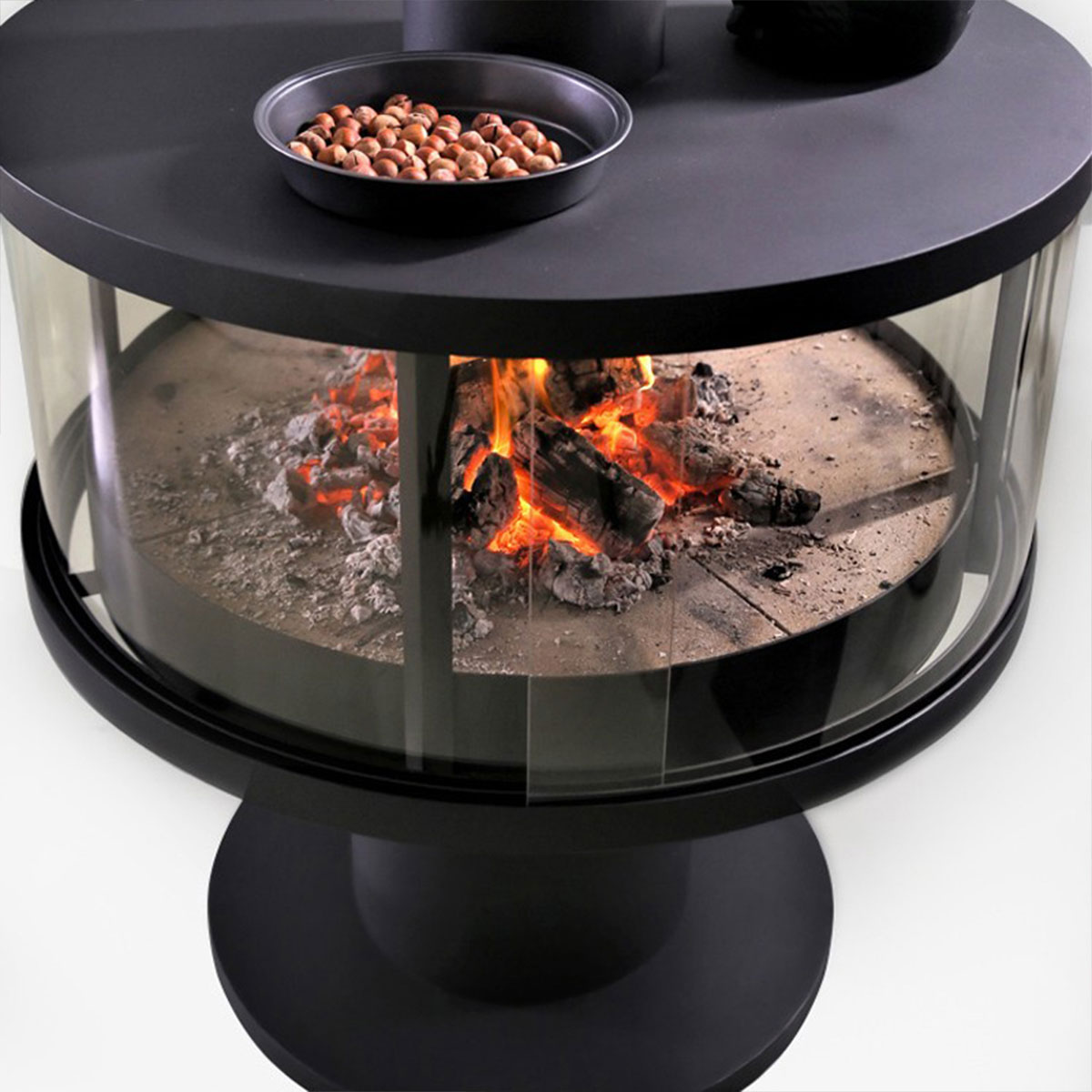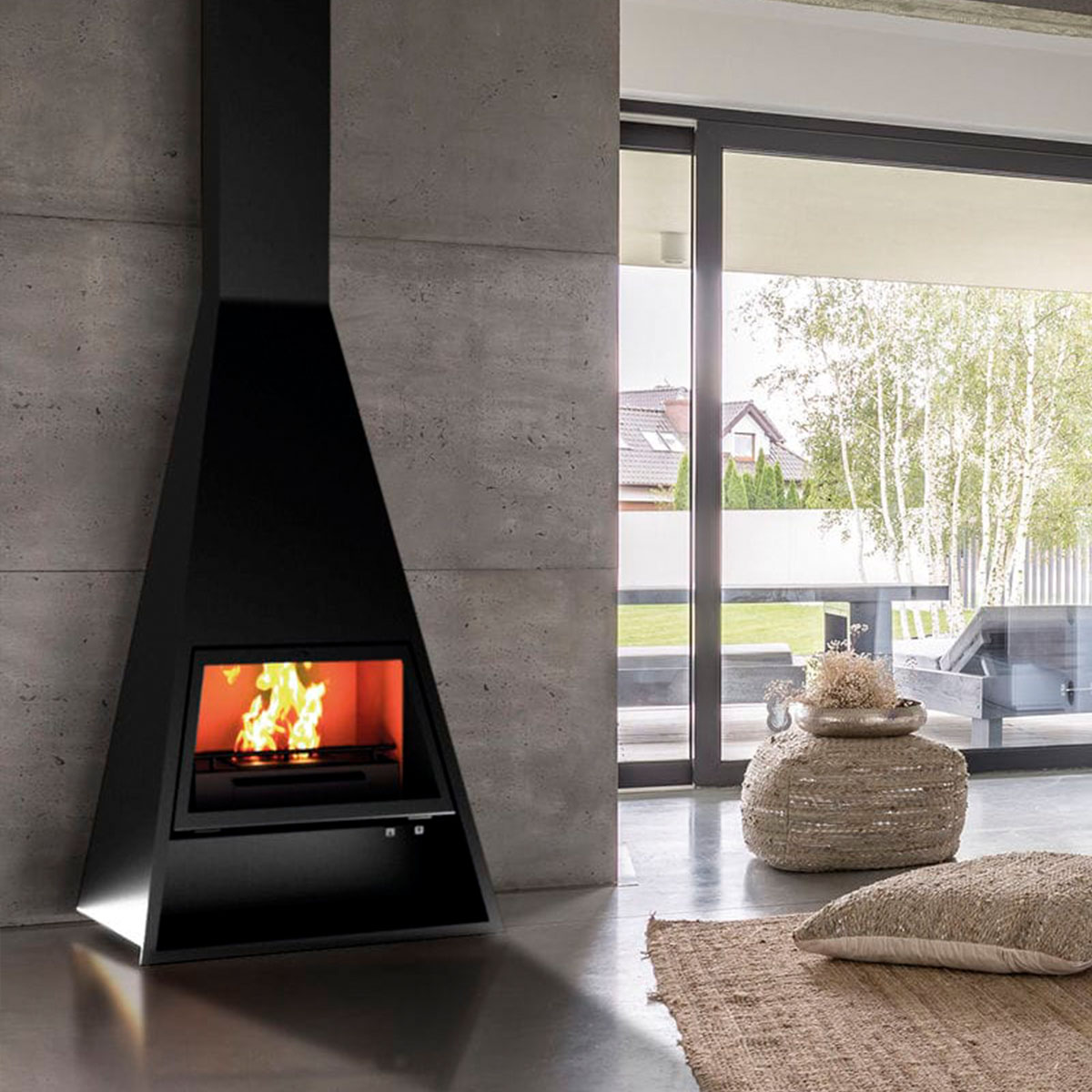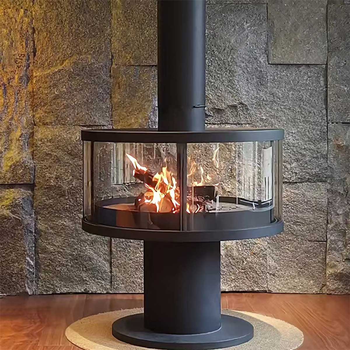 Combines modern aesthetics with efficient wood-burning functionality.